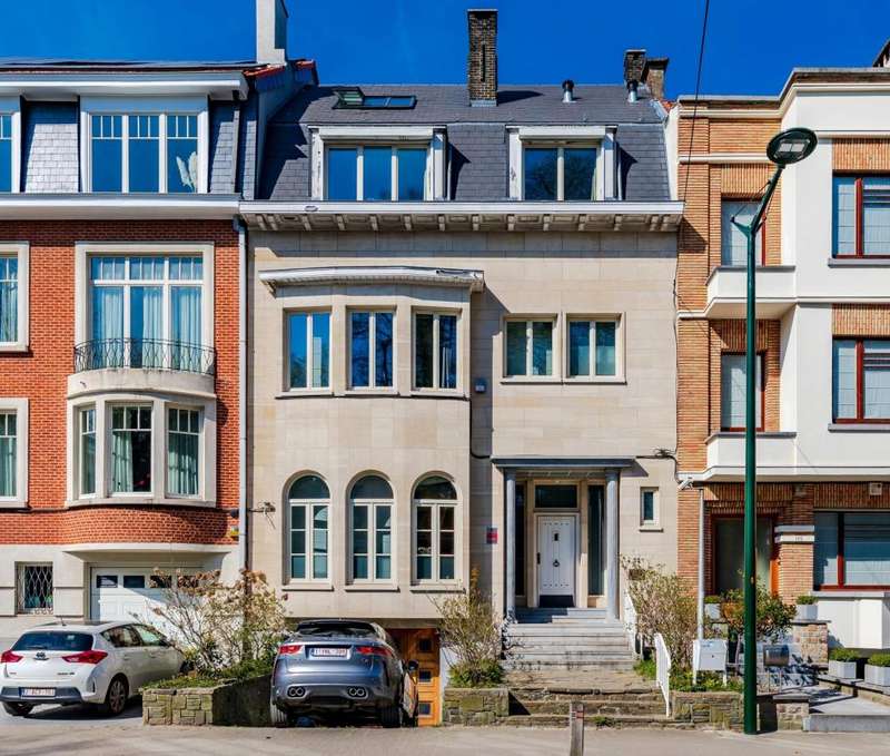 In a peaceful yet ultra-connected location, just a stone's throw from the Bois de la Cambre, this charming 1954 mansion has been fully renovated in 2016 using high-quality materials. With an elegant 8-metre façade, it is set on a plot of ± 2 ares 23 with a south-facing garden, enjoying a beautiful green environment at the rear. The house has a living area of ± 350 m², divided between bright reception rooms, a super equipped kitchen, 4 to 5 bedrooms, 3 bathrooms and a garage for 2 cars. EPC: E- A rare property combining prestige, comfort and accessibility in one of the most sought-after areas of Uccle.