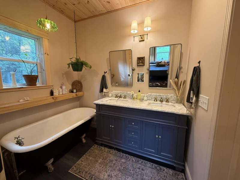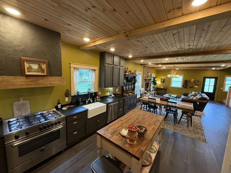 Modern Southern Elegance with Mountain Views! Built in 2024, this stunning home blends sleek modern design with timeless Southern charm. From the moment you step inside, you'll be captivated by the warmth of pine tongue-and-groove ceilings and the inviting stone wood-burning fireplace-perfect for cozy evenings.The heart of the home is a chef's dream kitchen featuring dark blue cabinetry, soapstone countertops, a spacious pantry, and a premium 5-burner Bertazzoni gas stove with dual fuel- electric oven. Whether you're hosting or meal prepping, this space is as functional as it is beautiful. The tankless gas water heater ensures comfort and efficiency year-round.Enjoy the durability and style of 100% waterproof luxury vinyl flooring throughout. With three bedrooms and three full bathrooms, there's room for everyone. The primary suite offers a private retreat with an elegant clawfoot tub and ensuite bath.Upstairs, a bonus room provides flexible space for a cozy TV lounge, home office, or creative studio-tailored to your lifestyle.Outside, a peaceful creek runs along the back of the property, framed by breathtaking mountain views your own slice of Appalachian paradise. And for all your storage and adventure needs, the property includes a spacious 1,260 sq ft garage perfect for housing your RV, tractor, ATV, or extra gear. Whether you're an outdoor enthusiast or simply need room to spread out, this space delivers.This home is more than a place to live it's a lifestyle. Southern sophistication meets modern convenience in every detail.Buyer to verify all information before making an informed offer