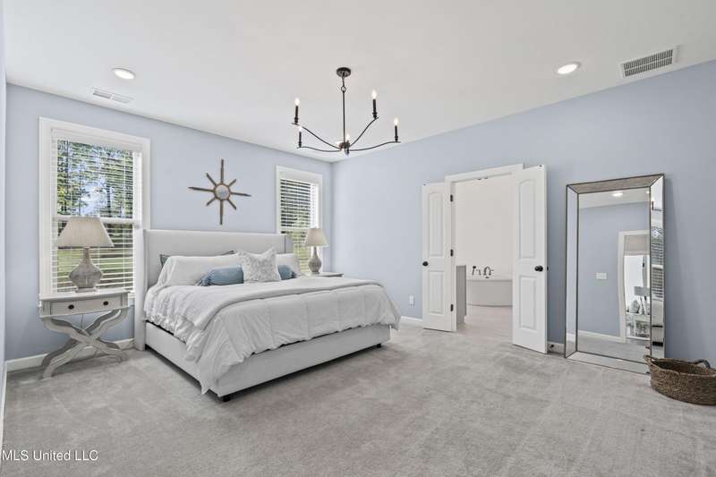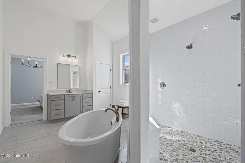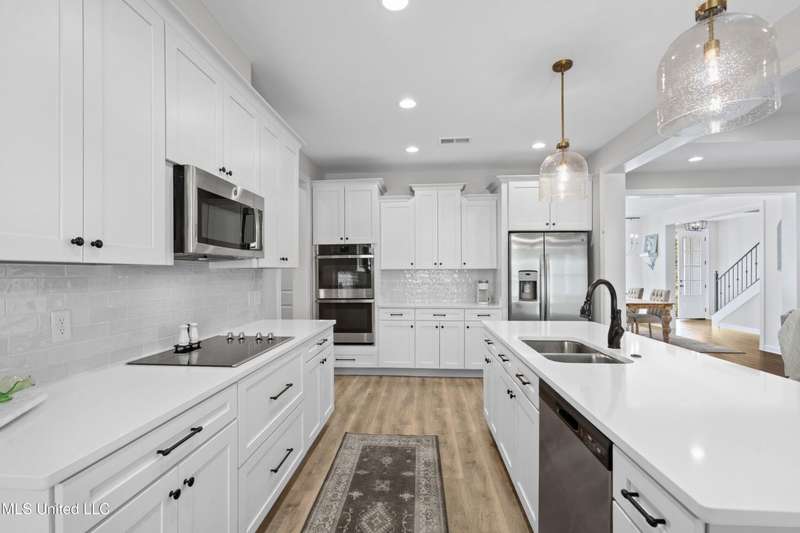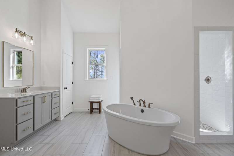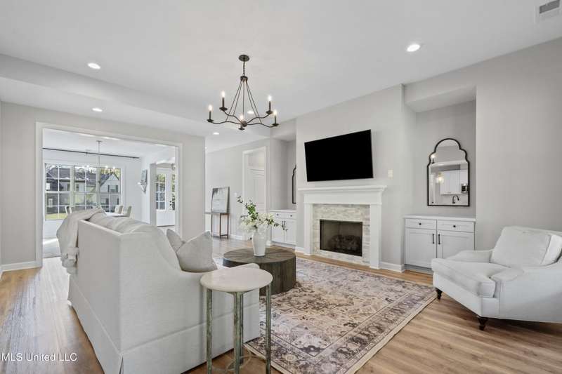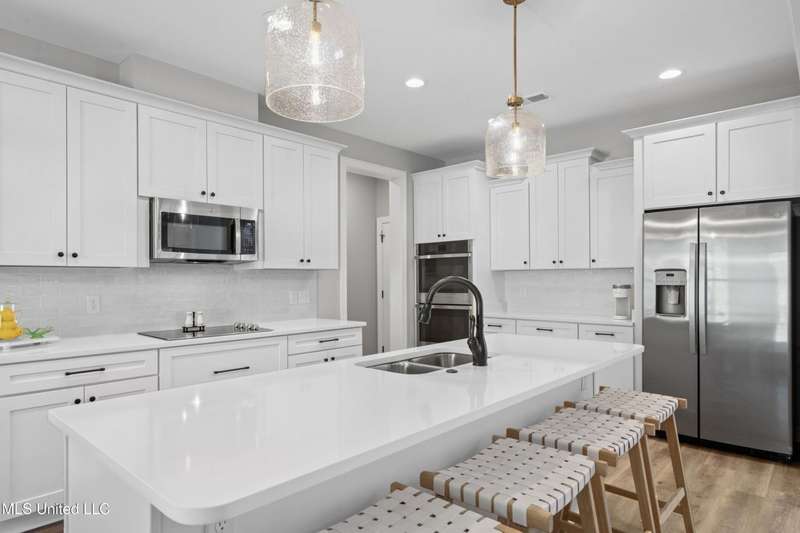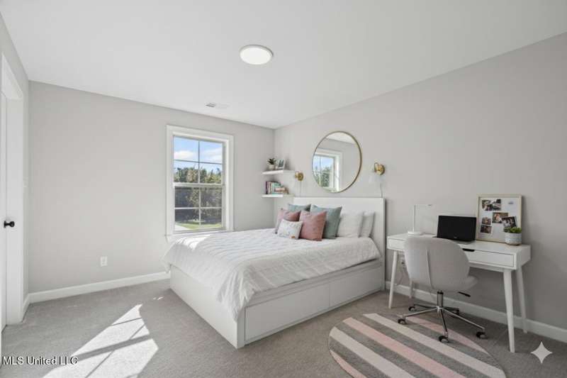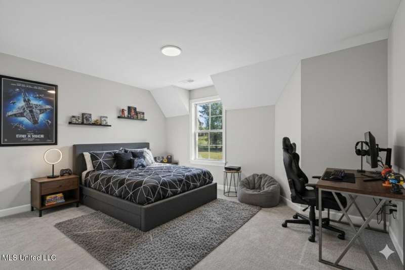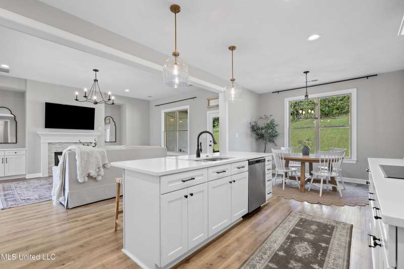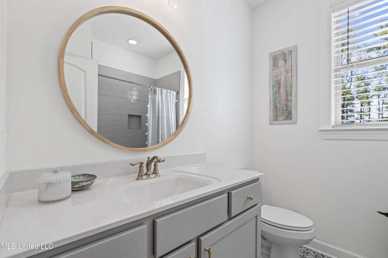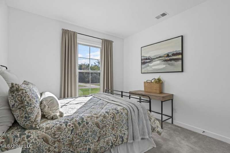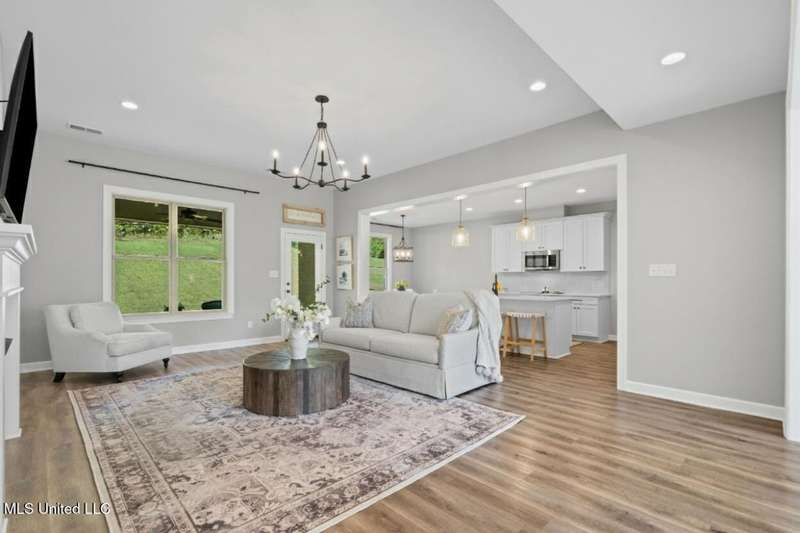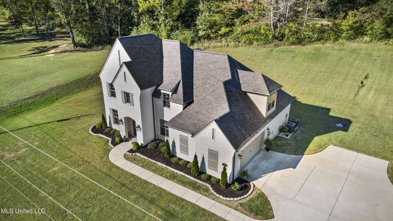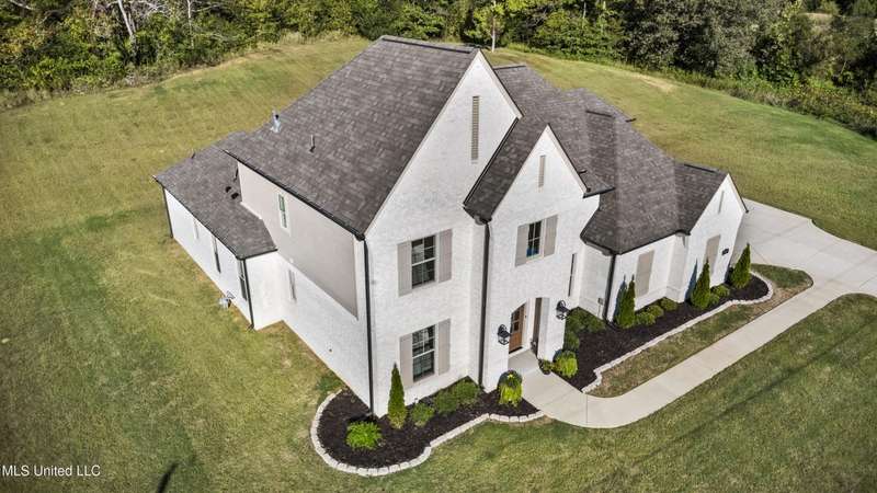 Nearly New 5 Bedroom Home ? Private treed lot - 1.65 acres ? 913 Lloyds Lane, Nesbit, MS ? Like-new 5-bedroom, 3-bath custom home combining modern comfort and timeless design in DeSoto County Schools. Open-concept layout connects the living room, dining, and kitchen under high ceilings with abundant natural light. The kitchen features quartz countertops, tile backsplash, white cabinetry, double ovens, a large island, stainless appliances, and a walk-in pantry. The gas fireplace with built-ins creates a welcoming gathering space in the great room. Two bedrooms are on the main level including a spacious primary suite with a freestanding tub, dual vanities, and a walk-through shower lined with floor-to-ceiling tile and dual showerheads. Upstairs includes three additional bedrooms (one large enough to be a bonus room) and a full bath. Luxury vinyl plank floors extend through main areas. A mudroom with built-in lockers connects to a large laundry room for daily organization. The covered patio overlooks a peaceful backyard bordered by trees . . . ideal for relaxing or entertaining. 100% USDA Eligible area. Video tour and floor plan available.Nearby Amenities: Hernando Square - 12 minutes | Kroger - 12 minutes | I-55 & I-69 access - 5 minutes(Please note: Upstairs rooms have been virtually staged)