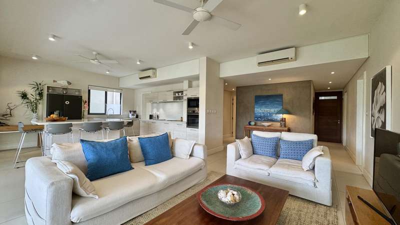 Step into the exclusivity of a 222 sqm prestige apartment, located on the ground floor in the heart of the highly sought-after La Balise Marina, the only residential marina in Mauritius. This rare property blends contemporary elegance, absolute comfort, and the rhythm of life by the water. From the moment you enter, the sense of space and light is unmistakable. The generous living room opens onto a sleek open-plan kitchen, perfectly designed for entertaining. This seamless layout extends outdoors to a spacious covered veranda, transformed into an inviting alfresco lounge, which leads to a private tropical courtyard with soothing views of the mountains. Designed as three serene bedroom suites, each is air-conditioned and features its own en-suite bathroom. Storage is spacious, functional, and discreet. A separate laundry room adds convenience, along with a rear entrance that's ideal for beach returns or storing bikes and water gear. Just steps away, your private boat mooring awaits, offering direct access to the lagoon of Black River. It’s a setting where island living meets timeless style—private, peaceful, and effortlessly connected to the sea. As a resident of La Balise Marina, you’ll enjoy premium amenities including a palm-lined communal pool, spa, fitness centre, tennis courts, and dedicated boating services. The property is open to foreign buyers and qualifies for permanent residency in Mauritius. Available now. Contact DIANE WATKINS – Property Consult for a private viewing! DIANE WATKINS - Property Consult Boutique Real Estate Agency | Mauritius BUY | SELL | RENT | CONSULT Proud member of Leading Real Estate Companies of the World® and Luxury Portfolio International®