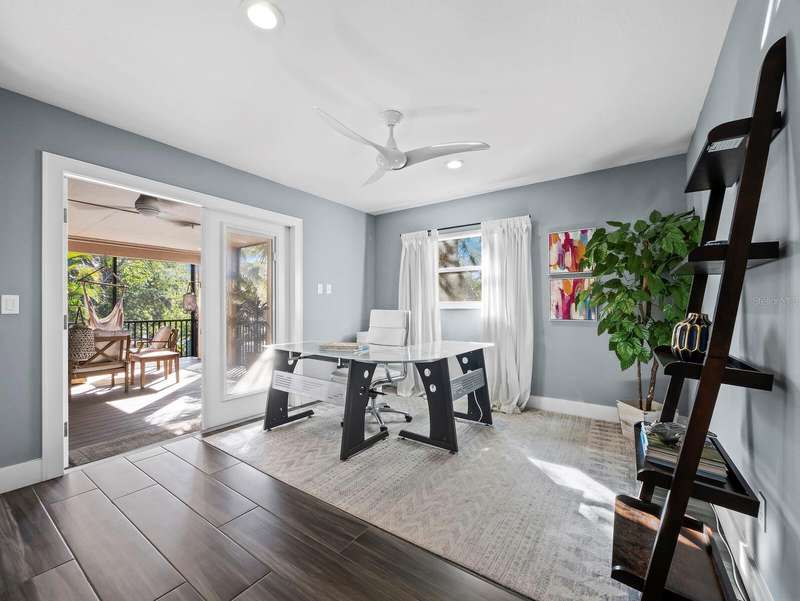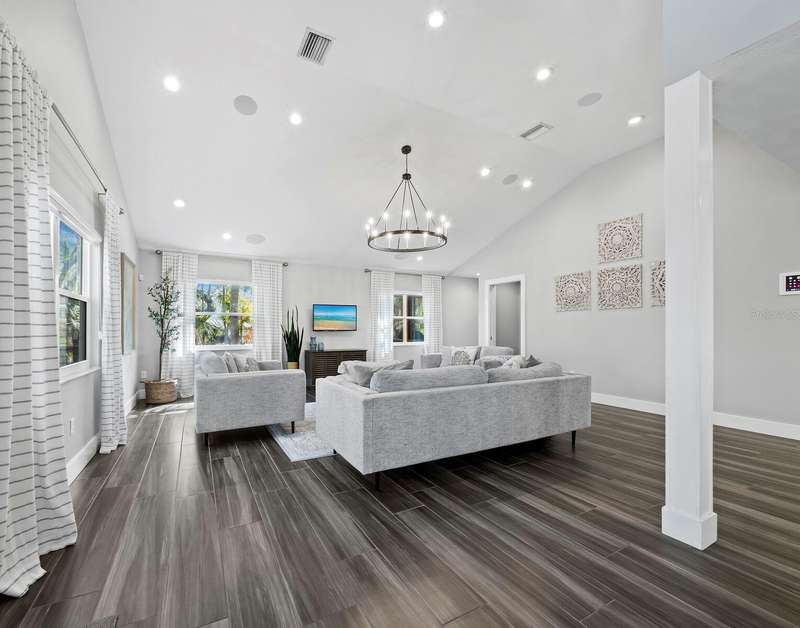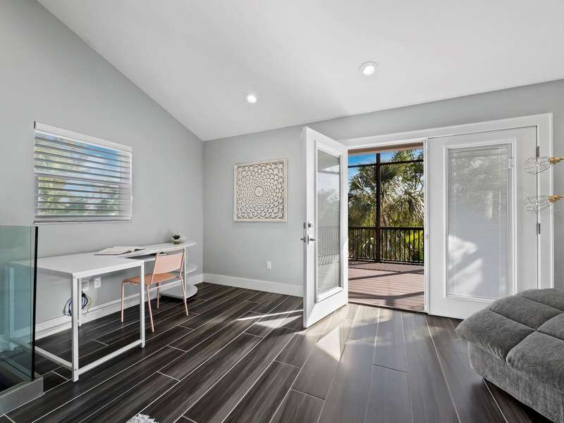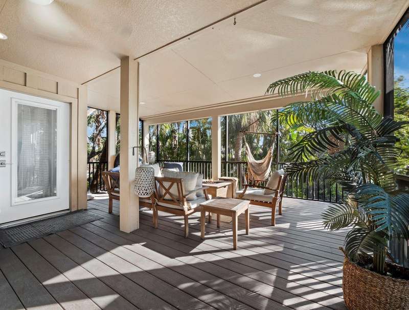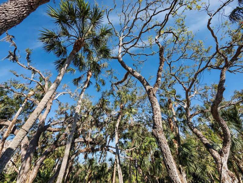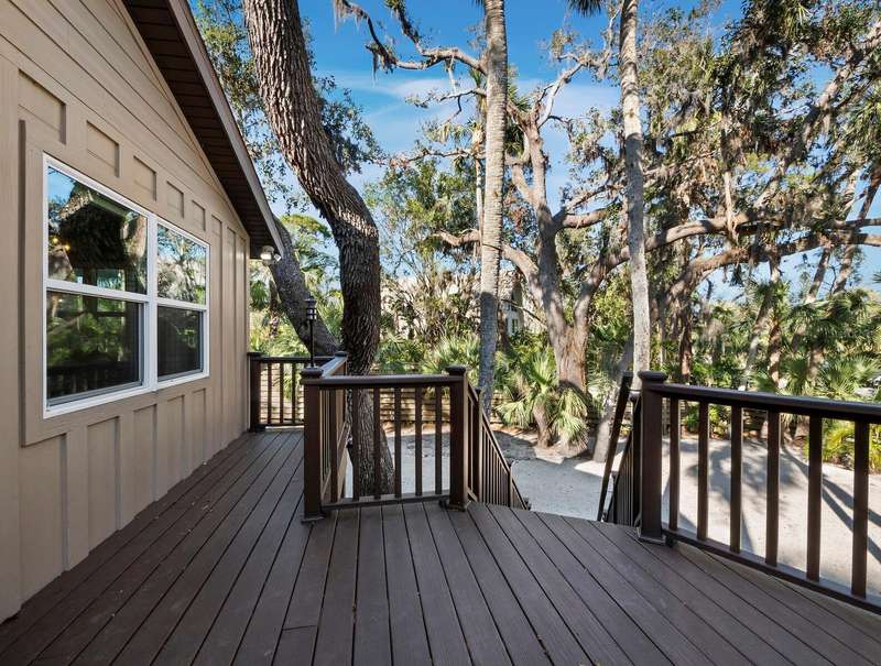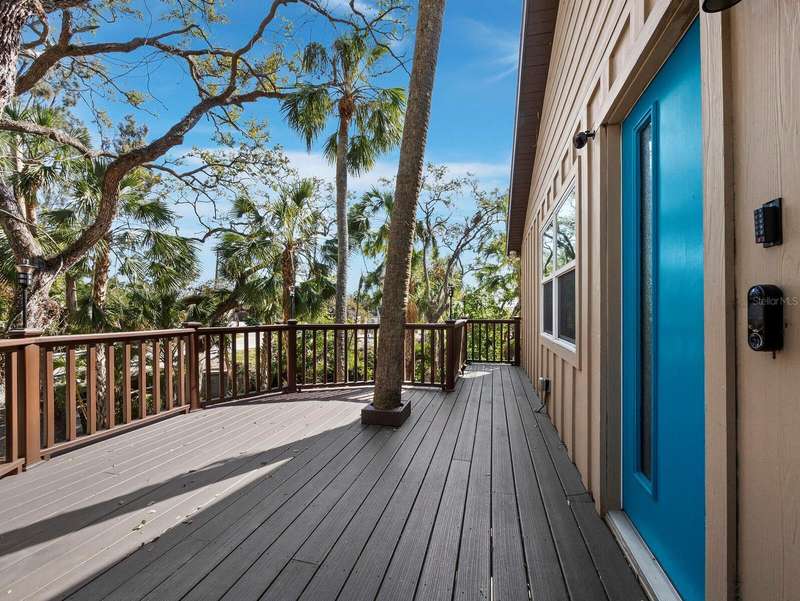 One or more photo(s) has been virtually staged. Have you been searching for a unique & ultra-special home nestled into the treetops? Look no further! Located in popular and convenient South Gate, this home is anything but typical! Elevated and surrounded by gorgeous nature, it has the feel of a luxurious tropical treehouse. From the large lot on a quiet & private street to the huge deck at the front door, you will appreciate the cool style as soon as you pull up…this property is truly one-of-a-kind. Phillippi Creek winds around the edge of the lot and you’ll often spot egrets, wood storks, blue heron, and even roseate spoonbills wading there, plus bald eagles and owls are known to nest nearby – it is a nature-lover’s paradise! Also, the creek is ideal for kayaking and you can launch right from the property and paddle all the way to in intercoastal if you like. The first floor features a spacious 2-car garage and loads of storage, with all living space located safely high above on the second and third stories. Soaring ceilings and a beautifully updated & chic kitchen define the main living area, with an elegant bath and the two nicely-sized bedrooms located on the same level. The property is offered furnished for your ultimate ease and convenience. You’ll adore the large screened deck with grill & gas fire pit too! Tucked into the treetops, this outdoor living space is infinitely enjoyable. Ascend to the main bedroom suite, where you will be absolutely wowed by the spaciousness and fantastic & airy volume ceilings! There is plenty of room for a sitting area, desk, or even a yoga or meditation spot so you can create a true retreat. The updated bath features a freestanding tub and shower with space for two, and the large walk-in closet has abundant room and is already fully customized with built-ins! The laundry is conveniently located upstairs in a second closet, and there is also a second fabulous screen porch to enjoy. Many smart home features make for easy living: Lutron lighting throughout, in-ceiling speakers, Arlo camera system, and an August automated front door lock. This entire home is perfectly updated and ready to enjoy and you will also be thrilled with the location: easily drive or bike to Siesta Key Beach or downtown, or hop on the nearby Legacy Trail! 10 minutes or less will get you most places, which is a rarity in Sarasota. Your tropical paradise treehouse awaits…come take a look at this unique and dazzling property today!