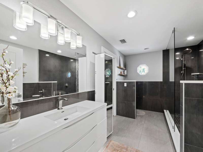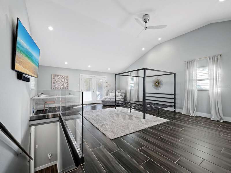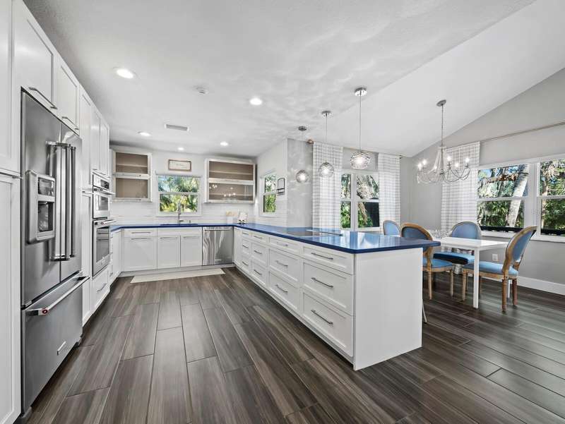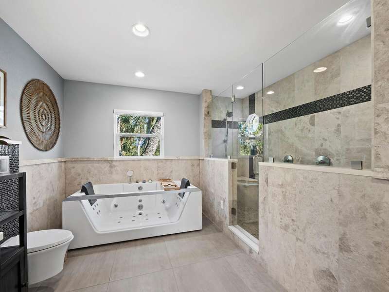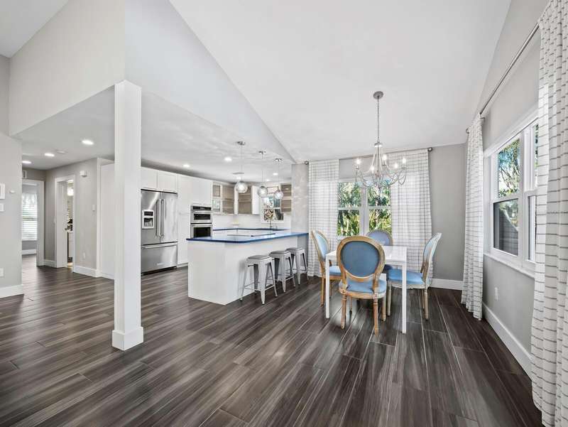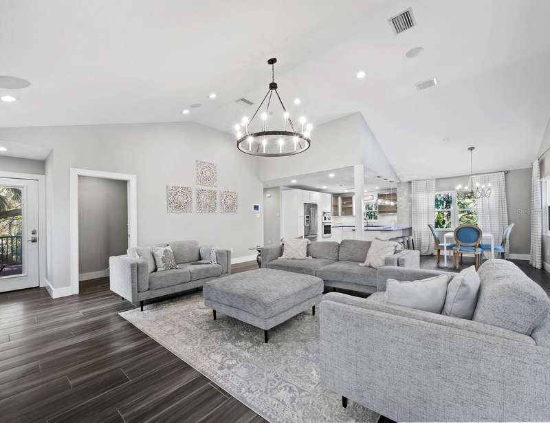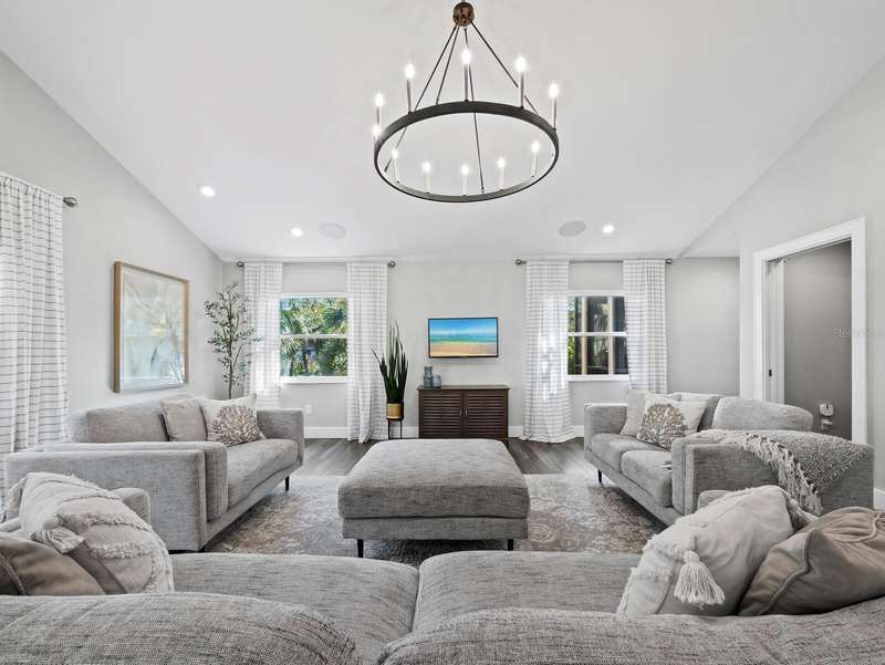 One or more photo(s) has been virtually staged. Have you been searching for a unique & ultra-special home nestled into the treetops? Look no further! Located in popular and convenient South Gate, this home is anything but typical! Elevated and surrounded by gorgeous nature, it has the feel of a luxurious tropical treehouse. From the large lot on a quiet & private street to the huge deck at the front door, you will appreciate the cool style as soon as you pull up…this property is truly one-of-a-kind. Phillippi Creek winds around the edge of the lot and you’ll often spot egrets, wood storks, blue heron, and even roseate spoonbills wading there, plus bald eagles and owls are known to nest nearby – it is a nature-lover’s paradise! Also, the creek is ideal for kayaking and you can launch right from the property and paddle all the way to in intercoastal if you like. The first floor features a spacious 2-car garage and loads of storage, with all living space located safely high above on the second and third stories. Soaring ceilings and a beautifully updated & chic kitchen define the main living area, with an elegant bath and the two nicely-sized bedrooms located on the same level. The property is offered furnished for your ultimate ease and convenience. You’ll adore the large screened deck with grill & gas fire pit too! Tucked into the treetops, this outdoor living space is infinitely enjoyable. Ascend to the main bedroom suite, where you will be absolutely wowed by the spaciousness and fantastic & airy volume ceilings! There is plenty of room for a sitting area, desk, or even a yoga or meditation spot so you can create a true retreat. The updated bath features a freestanding tub and shower with space for two, and the large walk-in closet has abundant room and is already fully customized with built-ins! The laundry is conveniently located upstairs in a second closet, and there is also a second fabulous screen porch to enjoy. Many smart home features make for easy living: Lutron lighting throughout, in-ceiling speakers, Arlo camera system, and an August automated front door lock. This entire home is perfectly updated and ready to enjoy and you will also be thrilled with the location: easily drive or bike to Siesta Key Beach or downtown, or hop on the nearby Legacy Trail! 10 minutes or less will get you most places, which is a rarity in Sarasota. Your tropical paradise treehouse awaits…come take a look at this unique and dazzling property today!