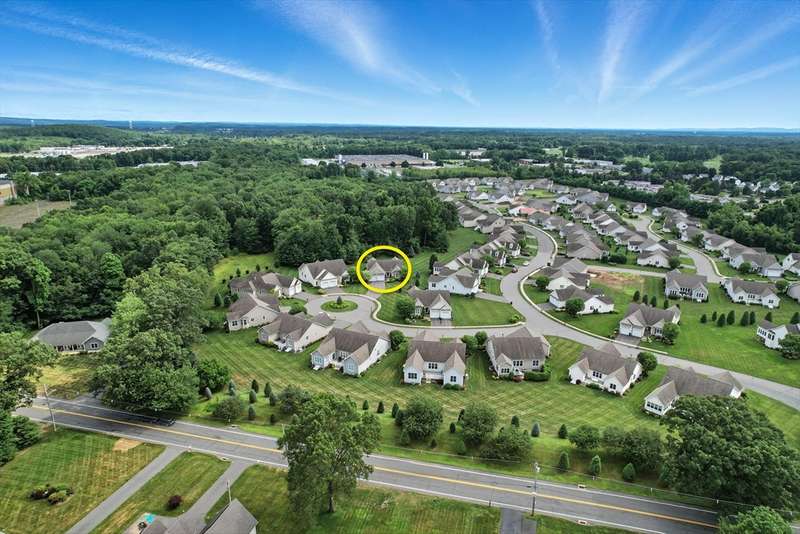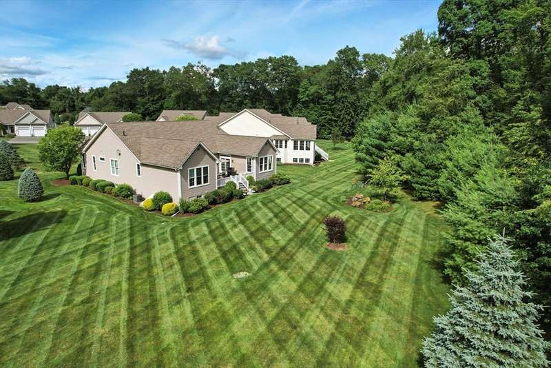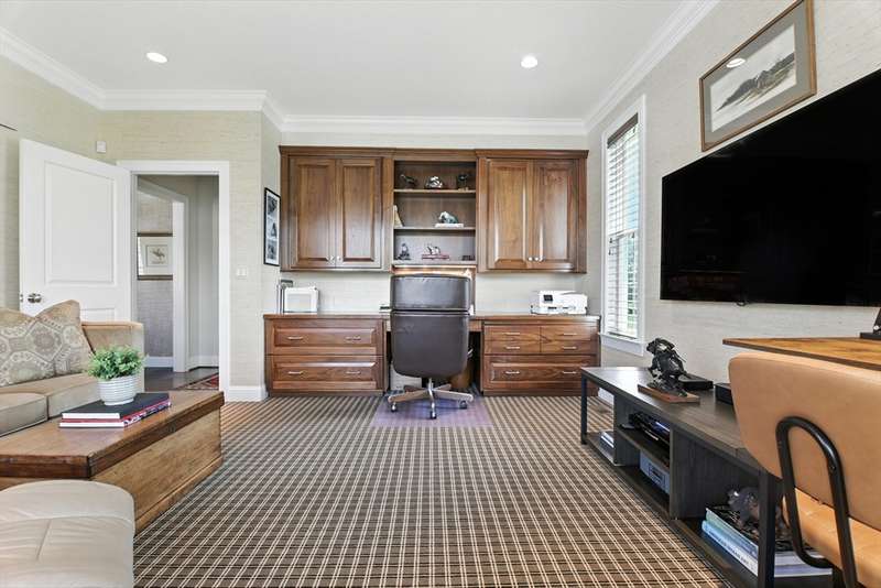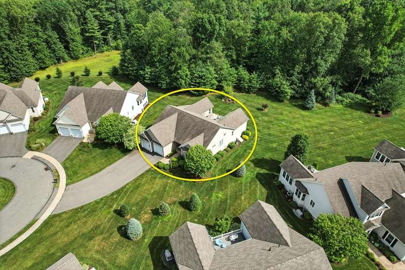 Exceptional 2 bedroom, 2.5 bath condo in a premier cul-de-sac location, privately set with beautiful wooded vistas. Inside, a custom floor plan delights with abundant natural light, a vaulted foyer, dark stained hardwood floors, crown moldings, custom cabinetry, bay windows, and a wonderfully functional floor plan including an office with built-in desk. The dramatic fireplace, specialty window treatments, and designer touches convey understated luxury. This cook s kitchen impresses with striking granite counters, a large island with seating, Bosch stainless appliances, and generous storage. You ll find a powder room, closet, and laundry conveniently located off the two-car garage and a full-house generator ensures peace of mind.The Fields at Chestnut offers premium, stand alone homes with all of the conveniences of condo living. Better than new don t miss this rare offering!