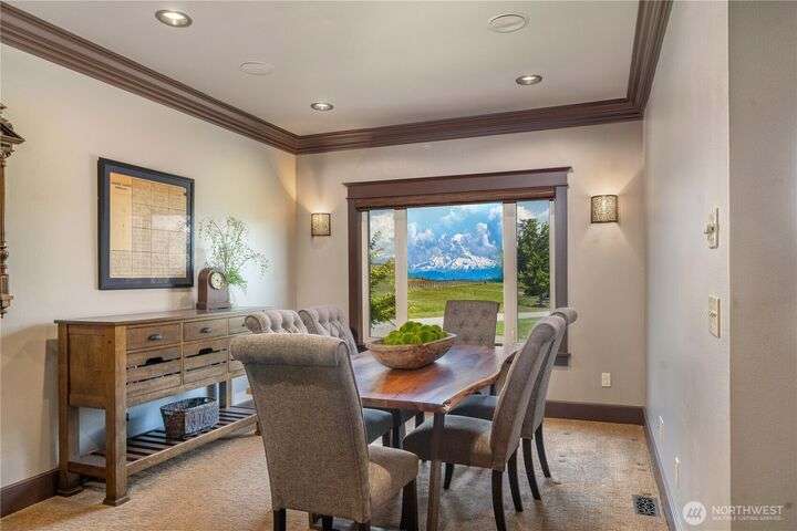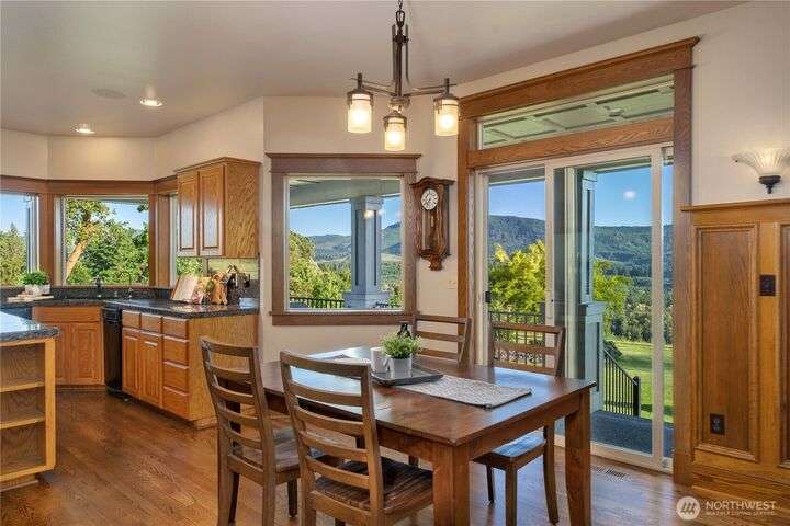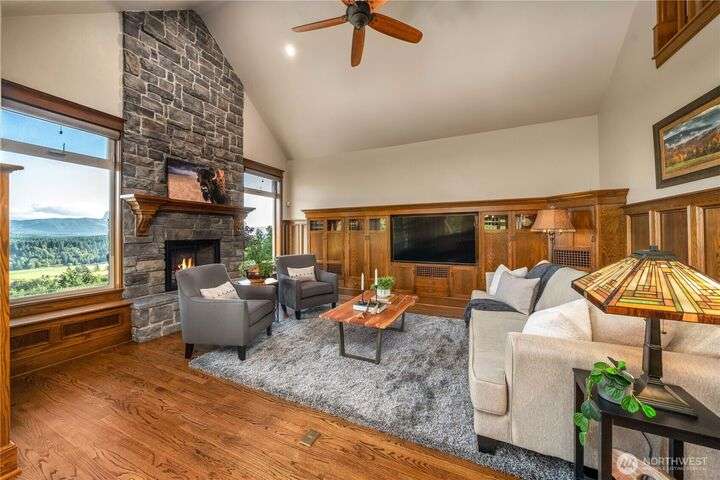 Once in a lifetime opportunity! Custom built home with truly incredible attention to detail. 5218sf 5bed, 4.5bath w/ his & hers master bath on the main. House has all the high end finishes: tile, woodwork, heated floors, radiant / heatpump, newer roof, windows, fireplaces, built-in movie theater, wet bar & sauna. Immaculately cared for. High ceiling 3+ bay garage & detached shop. Plenty of room to build a barn, shop or stables. Private gated community. Neighborhood is an equestrian’s dream. Wake up to wildlife! Sweeping views of Mt. Rainier, ridge-line, the valley, and Nisqually River. Beautiful wooded trails winding through old growth timber w/ river access. The grass is not fake. It’s just perfect. Ask about land & house package deal!!!