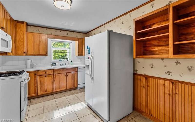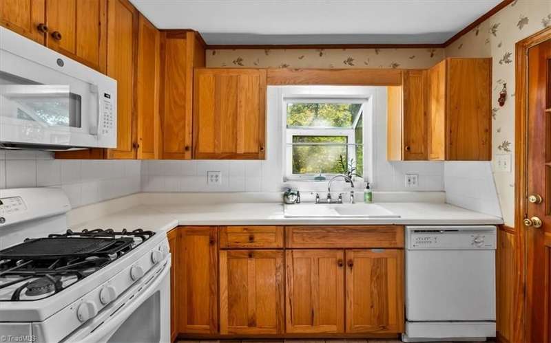 *Rare opportunity in 27410! Country setting in the City! Let the long driveway take you to this adorable ranch! Lovely 1.2+ acre lot, 2 BR+Office/3rd bedroom, wood floors, Kitchen filled with Hickory Cabinets, pull out spice drawer, green house window, glass front cabinets, wine rack, plus a gas range. Washer, dryer and refrigerator remain. Bathroom has storage cabinets & tile accents. Original refinished wood floors, Roof 2021, Gas furnace/AC 2025, storm windows plus a large deck or outdoor enjoyment. Garden & Nature lover? You'll appreciate this property being recognized by the National Wildlife Federation as a Certified Wildlife Habitat! Yard filled with a variety of plant, shrubs and trees. Storage Building with Lean-To. *Listing agent related to seller. $500 CREDIT FOR NEW DISWASHER*See Agent Only There are 3 bedrooms but Septic Permit is 2Bedrooms.