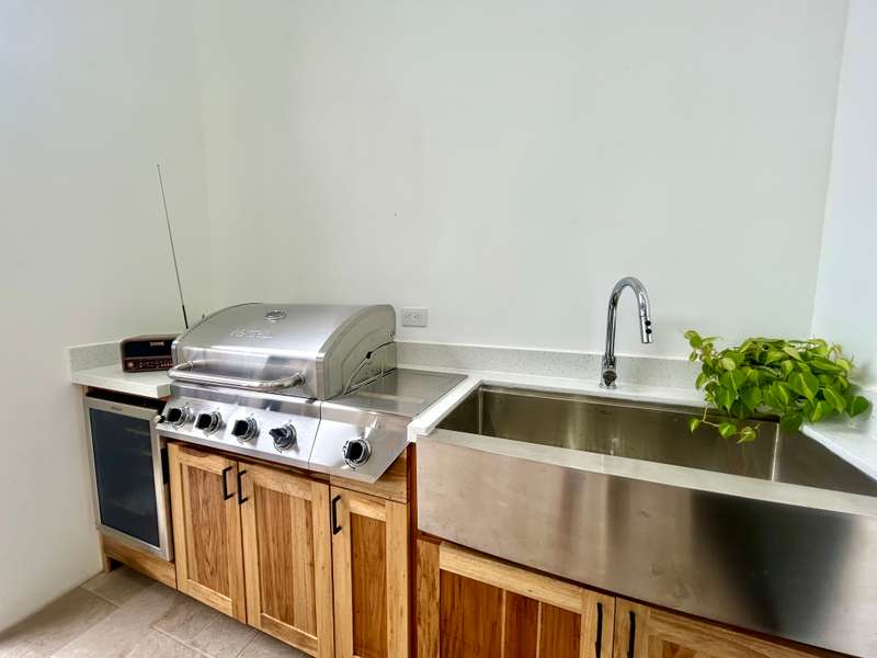 Since outdoor living is at the heart of Costa Rica’s lifestyle, the exterior area was designed to maximize relaxation and enjoyment. Here you’ll find a refreshing pool with mountain views, an outdoor shower, covered dining area, professional grill, wine cooler, lounge chairs, and even a floating hammock—the perfect setting for reading, unwinding, and making unforgettable memories.