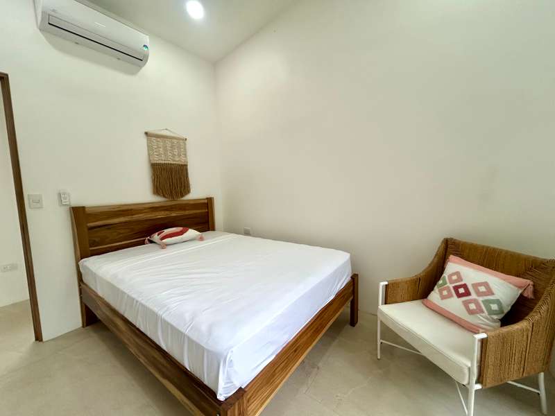 Todas las habitaciones tienen acceso directo a la piscina. Los dos cuartos de visitas están amueblados con camas tamaño queen, aire acondicionado y comparten un baño completo. Al final del pasillo se encuentra la majestuosa suite principal con cama king, walk-in closet, baño privado y televisor de pantalla plana.