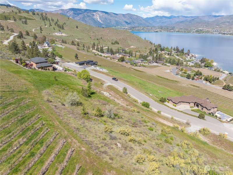 Take in 180 degree Lake Chelan views from lot 50 at Clos Chevalle, one of the most sought after communities in the Valley. This large .56 acre parcel is located near the end of Clos Chevalle Rd, making for easy access and a level of seclusion and privacy not experienced by most of the neighborhood. The lot is terraced, ideal for a lower-entry home design with living spaces on the upper floors to maximize the panoramic views. Power, fiber internet, as well as domestic and irrigation water are in the road. Clos Chevalle owners enjoy gated access, an extensive community trail system and park, as well as close proximity to a number of the areas top attractions. Wine tasting, dining opportunities, golf, all that and more just minutes away.
