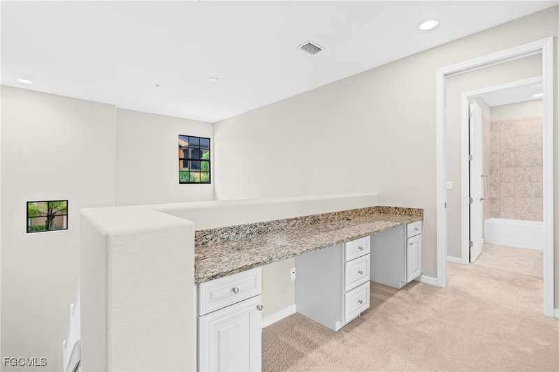 Embrace an exceptional lifestyle in the Santa Isabella model at Paseo, proudly recognized as "Community of the Year" for an astounding nine years running! Whether you desire a tranquil seasonal retreat or a vibrant full-time home, this elegant townhome delivers. This remarkable unit, previously a developer's office and only gently lived in for a few months, boasts a pristine interior. Soaring high ceilings and an abundance of natural light create an expansive and inviting ambiance throughout. On the first floor, a spacious great room with dramatic high ceilings flows seamlessly into an upgraded kitchen, complete with stainless steel appliances, granite countertops, and a practical breakfast bar. A convenient half bath is also located on this level. The second floor is a private haven, featuring an impressive master suite with a massive tile shower, double sinks, and a large walk-in closet. A comfortable guest suite, a dedicated laundry area, and a versatile office/loft with built-in desk and cabinets offer ultimate convenience. A 1-car garage provides additional storage and parking. Beyond the unit, discover the sought-after "quad" semi-private pool and courtyard, exclusively available to residents of the surrounding buildings. This charming outdoor space offers plenty of room to soak up the sun or relax in the shade, along with BBQ grills for delightful outdoor entertaining. For your peace of mind, all windows and doors are hurricane-rated for superior storm protection. This is also a golf cart friendly community. Paseo's unparalleled array of resort-style amenities includes a magnificent clubhouse, a spectacular resort pool complex with designated lap lanes and luxurious cabanas, a vibrant tiki bar, an inviting bistro, a cozy pub, a state-of-the-art movie theater, a well-stocked library, a pampering full-service spa, and a cutting-edge fitness center nicer than most gyms in town. Pursue an active lifestyle with lighted Har-Tru tennis courts, pickleball, basketball, bocce, and a new lighted bike path offering direct access to Lee County’s extensive trail system. Strategically located just minutes from RSW airport, Gulf Coast Town Center, FGCU, and the spring training grounds of both the Red Sox and Twins, Paseo offers the perfect fusion of accessibility, peaceful surroundings, and upscale living in one of Fort Myers’ most coveted communities. Come and experience the extraordinary lifestyle that defines Paseo. Visit mypaseo.life for in depth look at the amenities & community & schedule your showing today!