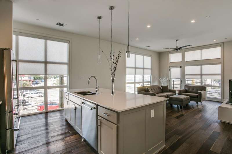 Beautiful, 3-story townhome in the thriving Henderson restaurant and entertainment district. This corner unit features floor to ceiling windows and lots of natural light throughout the living areas. The open floor plan has a state-of-the art kitchen with a gas stove, stainless appliances and breakfast bar which opens to the living area. The two bedrooms both have their own bathrooms and walk-in closets. Attached 2-car garage. Refrigerator, washer and dryer included with lease.