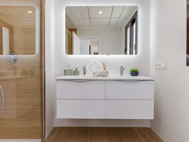 This beautiful 2-storey house of 97 m² with a terrace, garden and pool facing the Mediterranean Sea is located in the elegant Finestrat area on a plot of 362 m². The spacious, bright house has two bedrooms and two bathrooms. The day area provides a wonderful living-dining room that receives plenty of natural light and that has an open kitchen that sits along the right wall. The dining table is placed right next to a large window that leads to an incredible terrace with a private pool. This home enjoys high quality finishes and air conditioning. On the terrace there is a chill out area with a large swimming pool surrounded by a large garden, in total harmony with the property. Undoubtedly, this is an ideal villa to enjoy the Mediterranean climate, as a first or second residence in an unbeatable location in the Costa Blanca area. Please contact us for further information.