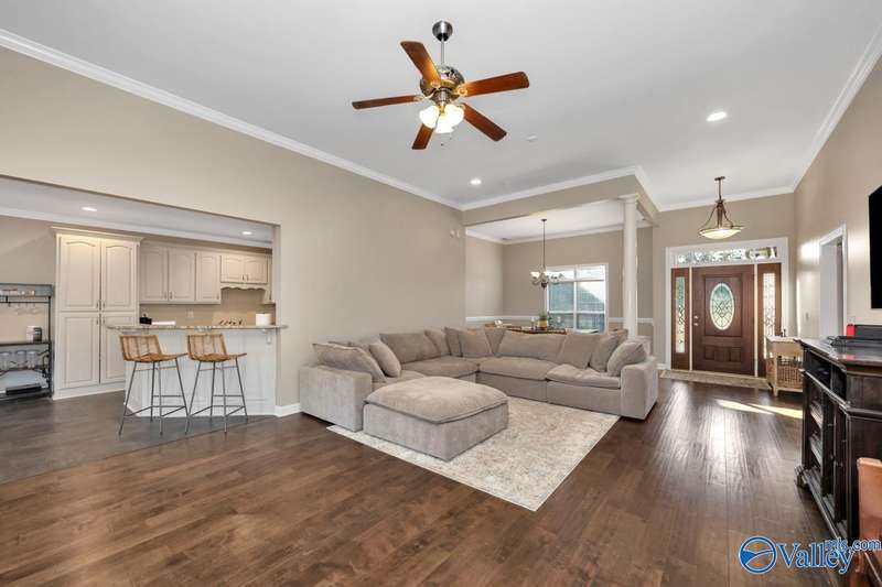 Full-brick home on 3.5 acres with stunning mountain and pasture views! This 3BR/3BA layout offers an additional flex room ideal for an office or potential 4th bedroom. Features include two master suites, hand-scraped hardwoods, granite countertops, stainless appliances, recessed lighting, and trey ceilings. Enjoy a separate dining room, breakfast area, glamour bath with whirlpool tub, and a covered patio overlooking a huge backyard. Roof replaced in 2023. Home also includes a built-in safe room, high-speed fiber internet, and abundant storage throughout. Spacious 3.5-acre lot offers room to add a workshop, garden, or outdoor recreation space!