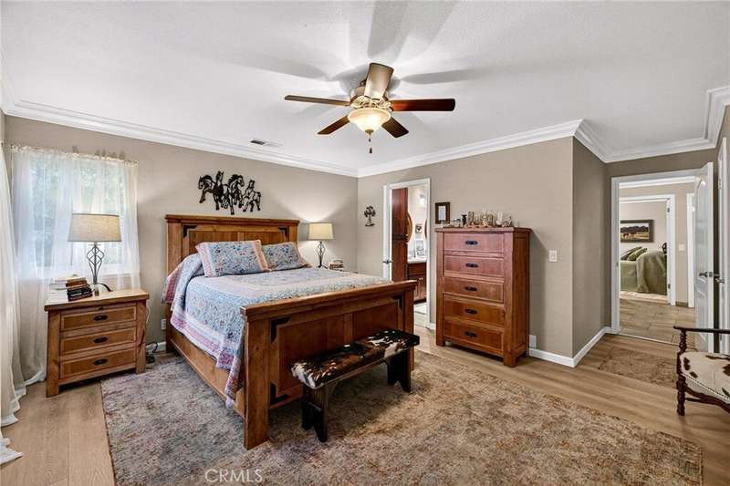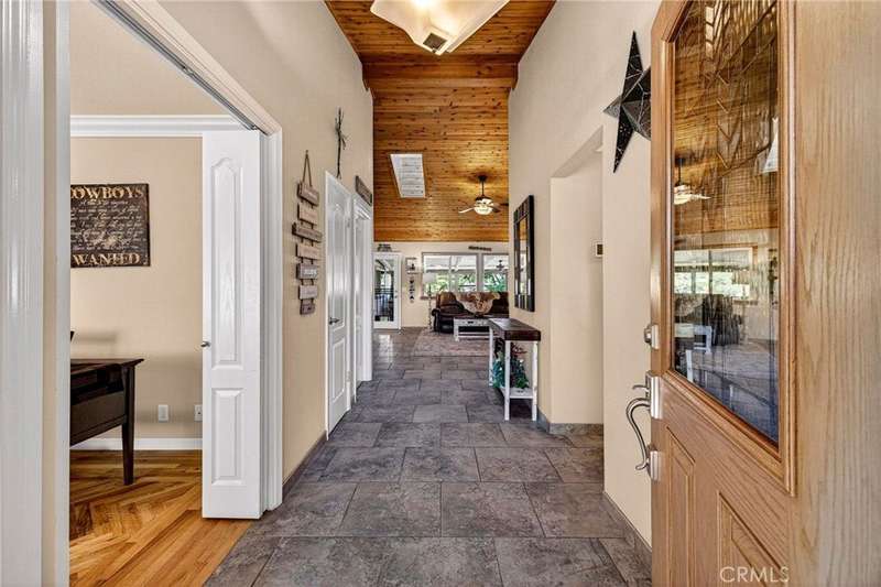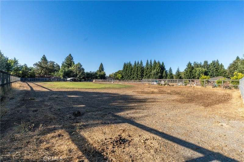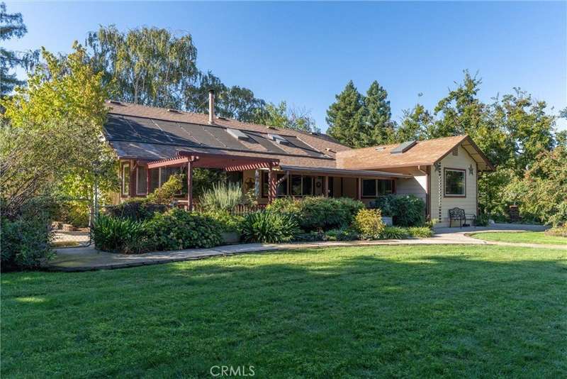 Tucked in the countryside just minutes from town, Roseanna Ranch is where modern comfort meets peaceful country living. This stunning 2.04-acre property has been lovingly renovated and designed for those who dream of wide-open spaces, horses in the pasture, and sunsets over the arena. The beautifully remodeled farmhouse spans approximately 2,100 sq. ft. with 4 bedrooms and 2 bathrooms, offering the perfect blend of rustic charm and modern sophistication. Inside, Italian tile flows throughout the main living spaces, luxury vinyl plank flooring accents the bedrooms, and custom wood flooring adds character to the first floor. The spacious living room features a vaulted knotty pine ceiling with skylights that fill the home with natural light, while an efficient Heat Tech wood stove adds cozy ambiance. The kitchen is a showpiece with quartz/Cambria countertops, stainless steel appliances (new in 2019 & 2023), a garden bay window, and a dining room addition with skylights and built-in china cabinets. The primary suite includes a walk-in shower, a walk-in closet, and elegant finishes. Updates include new doors and windows, crown molding, a whole-house vacuum, fan, Culligan water softener, filtration system, and a new HVAC unit. Step outside and fall in love with the fully fenced and gated acreage, featuring manicured lawns, redwood, birch, crepe myrtle, and maple trees surrounded by colorful perennials and blooming roses. A solar-heated pool with a large patio area provides the perfect setting for entertaining, while raised garden beds and a fenced orchard offer a touch of farm-to-table living. For equestrian lovers, this property is a dream come true. The two-stall barn features paddocks, a tack room, hay storage, a large farm sink, a full bathroom with hot water, electric fans, and washer/dryer hookups. A 110’x120’ riding arena with sprinklers and excellent footing sits beside a half-acre pasture with irrigation and RV or trailer storage. There’s also a chicken coop, fenced garden, and space for tractors and equipment. A 12’x24’ detached studio with split HVAC, insulation, and electric is perfect as an art studio, office, or guest space. With 40 owned solar panels on the barn, a new well pump and casing (2023), and Byers LeafGuard gutters, this property offers beauty, efficiency, and peace of mind. Roseanna Ranch is more than a property; it’s a lifestyle of comfort, connection, and country charm just minutes from town and local schools.