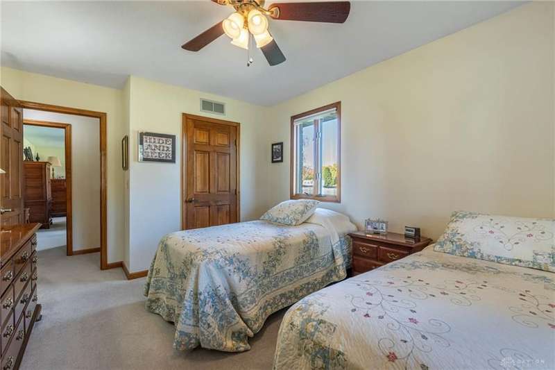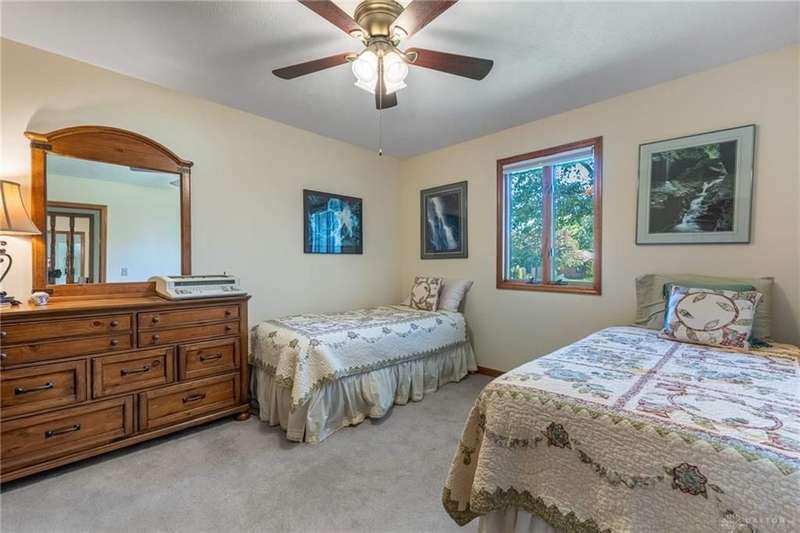 *Back on the market after the buyers changed their minds* Welcome home! This meticulously cared-for ranch blends quality craftsmanship with everyday comfort and a quiet location that's hard to beat - right next to WGC Golf Course, the #1 golf course in Greene County!Built to last, this 3-bedroom, 3.5-bath home sits on a beautiful half-acre corner lot with fresh landscaping and plenty of curb appeal. Inside, you'll find a lovely kitchen with Corian countertops, a large island, stainless steel appliances, a Thermador cooktop, and a walk-in pantry. The adjoining breakfast nook is the perfect spot to enjoy your morning coffee, while the formal dining and living rooms offer plenty of space for hosting family dinners or holiday gatherings.The cozy family room features a brick gas fireplace that sets a warm, welcoming tone for the whole home. Nice-sized bedrooms feature cedar-lined closets, and the spacious primary suite offers a large, tiled shower and his-and-her sinks, as well as a large linen closet.The finished basement expands your living space with a wet bar, a pool table that conveys, an office (or potential guest room without egress), and a smaller office or storage room-plus a large unfinished area for extra storage.You'll love the 3-car garage setup, where the third bay currently includes a storage room and golf cart parking but can easily be converted back to a full bay. There's also an extra parking pad for your RV, boat, or trailer. With Anderson windows, a whole-house vacuum system, and years of attentive care, this home is truly move-in ready and waiting for its next owner to enjoy.If you'd like more space (and no immediate neighbors), the vacant lot next door is also available for purchase!.3 miles to the WGC Golf Course, .5 miles to the Xenia bike path, 2 miles to downtown Xenia, 15 min to Yellow Springs!