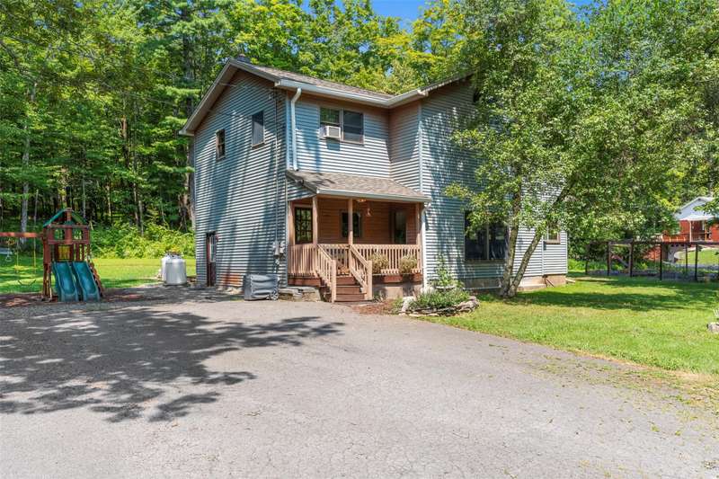 Located just minutes from the vibrant villages of Woodstock and Kingston and surrounded by some of the best hiking in the Hudson Valley, this spacious Colonial offers incredible potential. The flexible layout features a large eat-in kitchen, separate dining area, cozy sitting area with a wood-burning fireplace, and an oversized family room. A full bathroom with both a soaking tub and separate shower, plus a laundry room, complete the main level. Off the back of the home, a deck overlooks the yard and backs up to NY State land, adding privacy and extra space for outdoor enjoyment. Upstairs, you'll find three generously sized bedrooms PLUS a bright office with built-in shelving and a large closet that could easily function as a fourth bedroom, along with a second full bath. The roof is less than a year old, providing peace of mind for years to come. Additional storage is available in the pull-down attic, outdoor shed, and fenced-in garden area is perfect for anyone dreaming of a backyard vegetable plot or a few chickens. Easy access to Saugerties, Kingston, and Woodstock, this property is a rare chance to invest in a well-loved home.