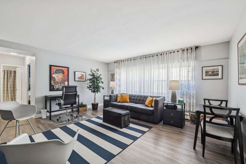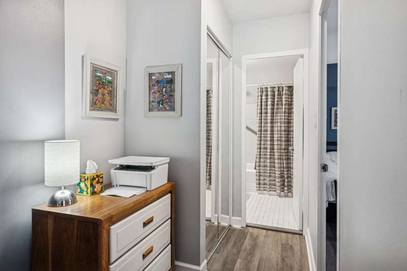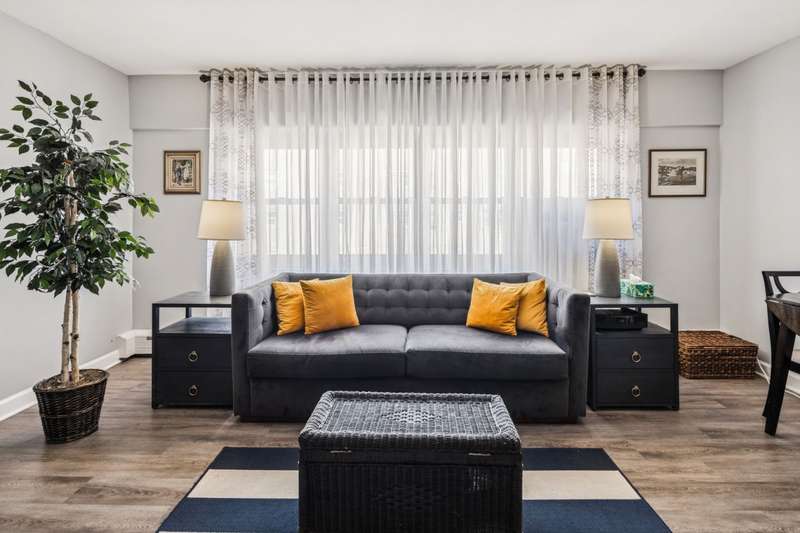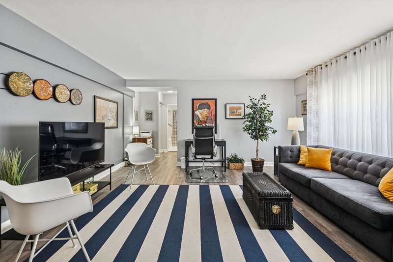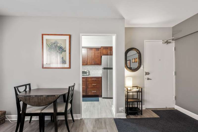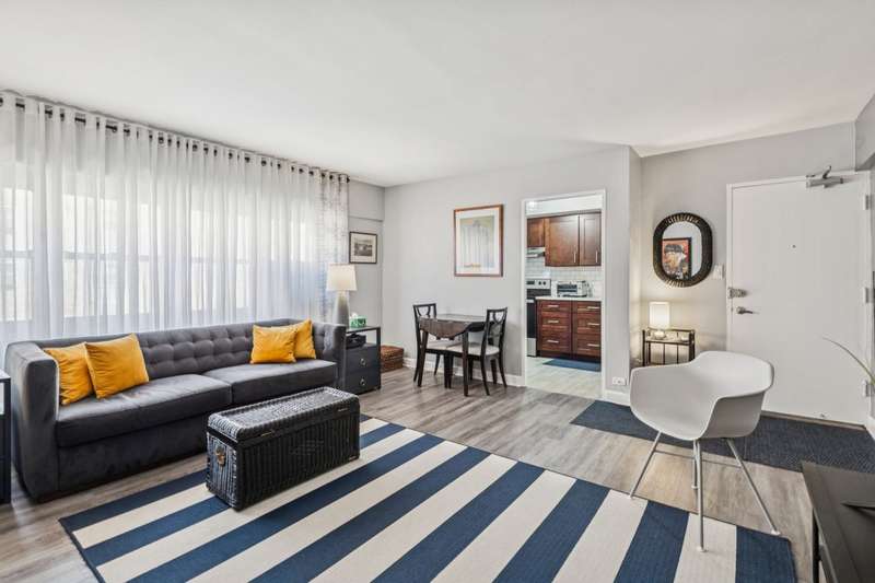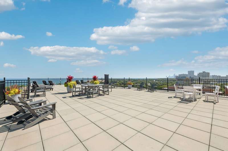 Completely Turnkey residence at very popular Shoreline Park. Residence 1009 features wonderful sunlight, no wasted hallway space, luxury high-end vinyl flooring throughout. Kitchen features custom all wood cabinetry with dove tail joints, cylinder brushed stainless steel steel hardware, all Stainless steel appliance package, re-circulating culinary hood, extra deep, single under mount sink, black swan faucet, 1.25 straight edge contemporary white quartz counters with grey veining. FULL SIZE DISHWASHER. Wonderful window in the kitchen. Large rectangle format porcelain floor tiles. This designer residence painted in light grey with white trim and moldings. Generous living space accommodates a desk, small eating table and living room furniture. 16'x11' bedroom with ceiling fan and three closets. Linen closet. Pristine, contemporary white tiled bathroom, pedestal sink, medicine cabinet for storage. Steps to Lake Michigan, restaurants, historical music theaters, restaurants, grocery and LSD on ramp at Lawrence. Easy access to public transportation including the 136, 146 and 148 buses that stop at the front door of Shoreline Park. This is a full amenity building including 24 hour doorstaff, on-site management, maintenance, building engineer, incredible sundeck completely outfitted, 360 degree views with no obstructions, gym, game room, business center, hospitality and laundry rooms. Deeded garage parking is included in the listing price. Residence 1009 is a true gem, nothing to do but move in. Furniture/furnishings also negotiable for a true plug and play transaction.
