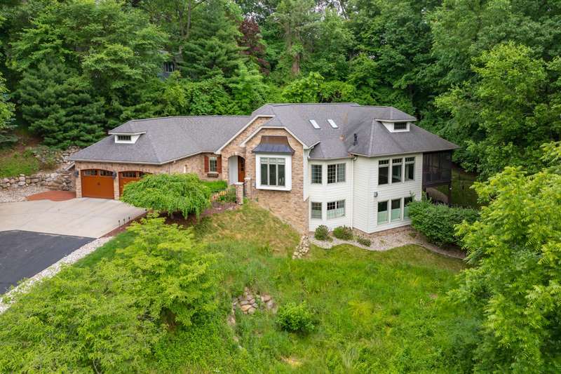 OPEN HOUSE CANCELLED. PENDING SALE. One of the most sought after locations in the city of Kalamazoo and nestled in a private setting overlooking Pikes Ponds and adjacent to Kleinstuck Preserve, is your retreat in the city! This custom designed 4 bedroom and 3.5 bath former winner of the Parade Home Tour, built by Pennings & Son, offers unbeatable character and quality throughout each level. Ease of living w/ accessibility features- zero clearance covered entrances, 36'' doors, designated spot for future elevator if desired, and room for everyone, yet quaint enough for one. On the main level you will find the gourmet kitchen w/ large center island, beautiful cabinetry w/ a large pantry, and open to the living room w/stone wall FP and dining area, as well as a conversation/transitional space w/cherry cabinetry.