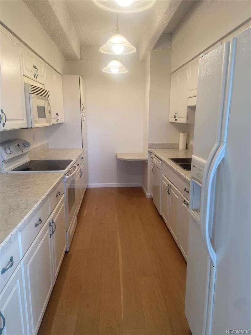 AMAZING VIEWS OF THE MOUNTAINS AND THE CITY!! AMAZING VALUE!! AMAZING OPPORTUNITY!! This beautiful unit has new wood flooring, many new fixtures and new paint throughout! It is tastefully appointed, spotlessly clean and ready for immediate occupancy. The breathtaking west views from the living room, dining room, and lanai are of the mountain ranges including Pikes Peak to the south and downtown Denver. The lanai is heated and air conditioned for year-round enjoyment. The second bedroom also has amazing views and is perfect for a guest room, den or office. This is one of the few units that has TWO GARAGE SPACES plus one exterior space on the deck. Included are two additional storage rooms within the building for the exclusive use of the owner. The monthly HOA fee is also a great value as it includes heat and central air conditioning. The owner only pays for the electricity and internet. No need for a gym membership as the community club house has men's and women's locker rooms, a great work-out room with newer equipment, indoor swimming pool, sauna, spa and pool room. You can also enjoy the Pickle Ball and Tennis Courts or simply stroll around the 7-acre impeccably maintained grounds and enjoy the soothing sounds of the water flowing through the two ponds. The community grounds are a true oasis. Don't miss them!! Electric car? -- charging stations on site. Conveniently located to Cherry Creek, Lowry Town Center, DIA, Denver Tech and only 20 minutes to LoDo. Candlewyck is a no pet dog community subject to Federal Regulations for service and emotional support animals.