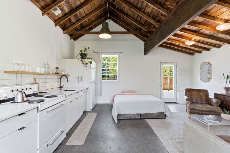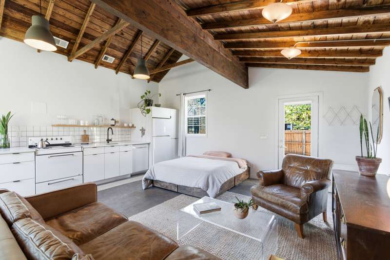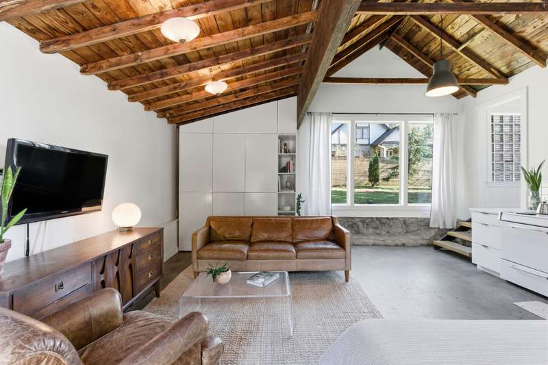 East Nashville is known as a haven for creatives with an impeccable eye for style and a demand for charm. This 1940's Italian limewashed cottage is hiding a completely unexpected edge above the rest. With a full guest house tucked around the corner, you have a totally separate dwelling for short or long term renters, recording studio or multi-generation living - whatever suits your lifestyle best. The exposed wood ceilings with beams and concrete floors exude intentional design. The main home offers four bedrooms, with the primary bedroom and an office on the main level, a stunning fireplace for curling up with a book, original hardwood floors, formal dining room, + mudroom for access to outside. Upstairs you'll find two additional bedrooms with a shared bathroom. Every detail has been thoughtfully curated throughout the home. Also, the home sits on an oversized lot which provides a sprawling, fenced backyard with phenomenal treescapes. 1421 Shelton Avenue is a truly spectacular home - make it yours.