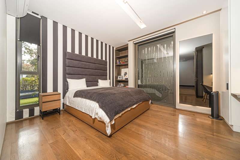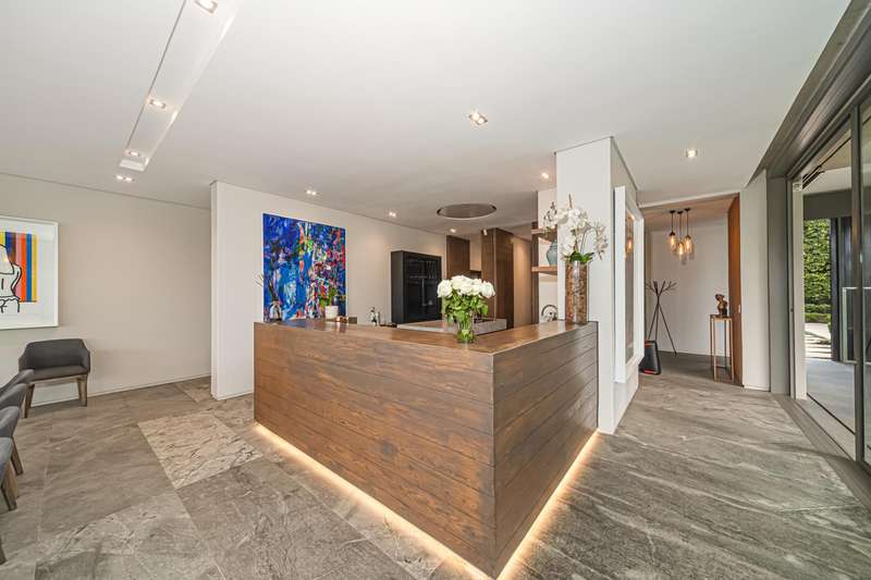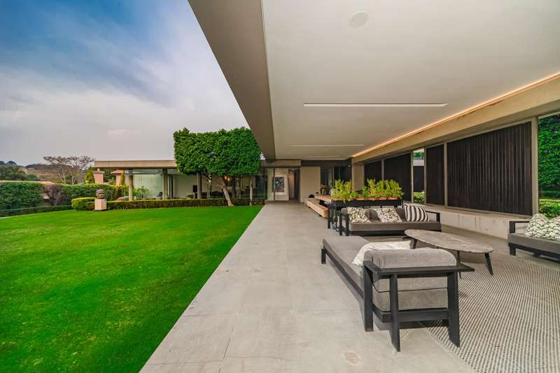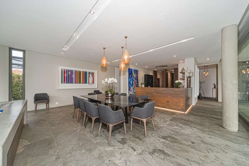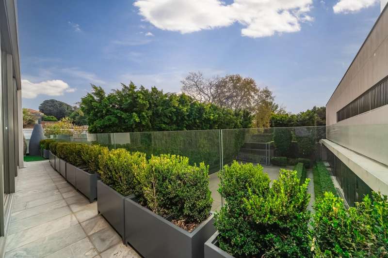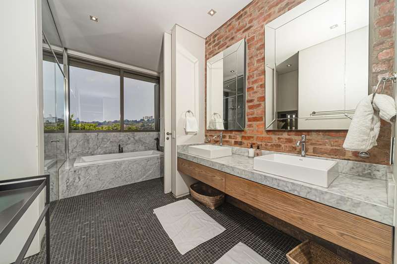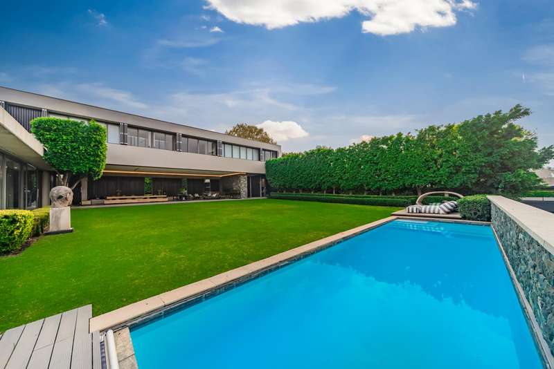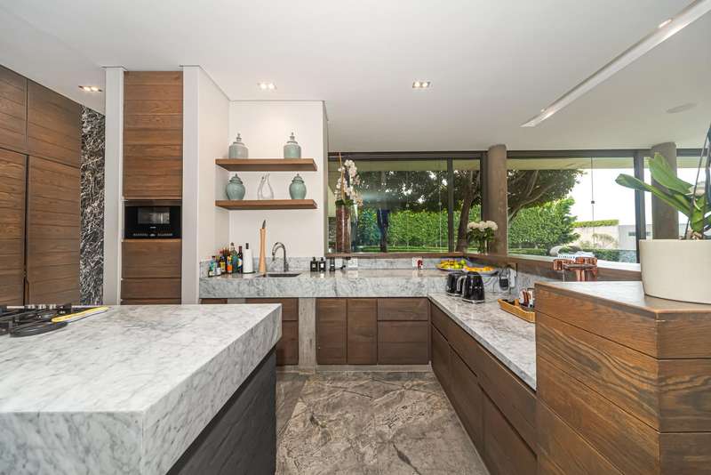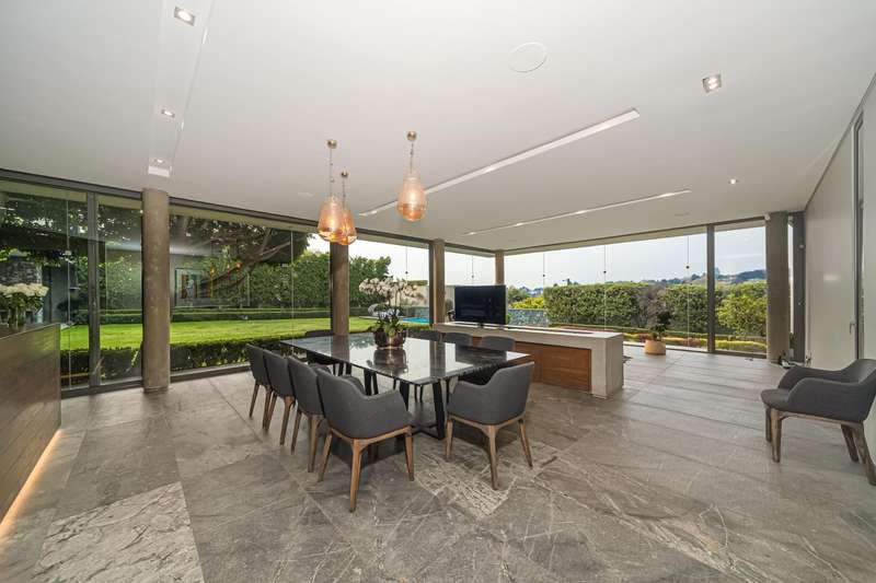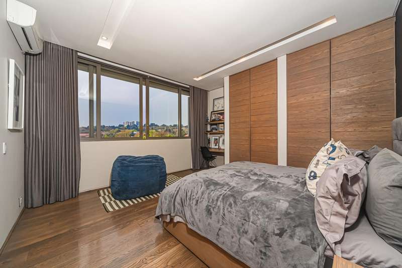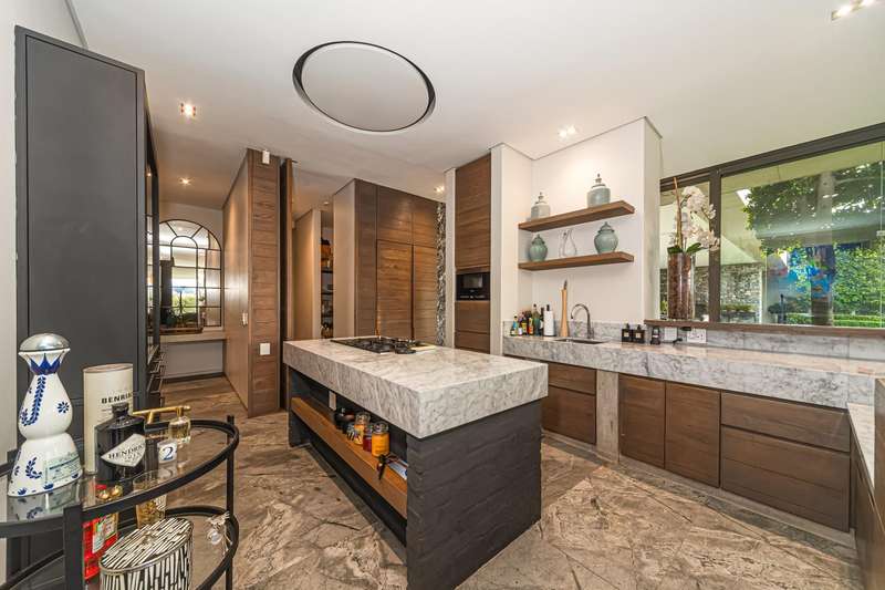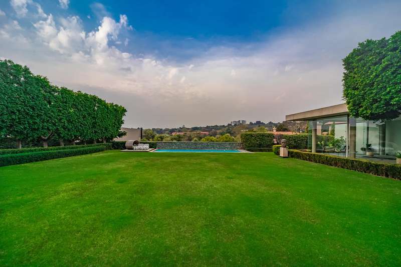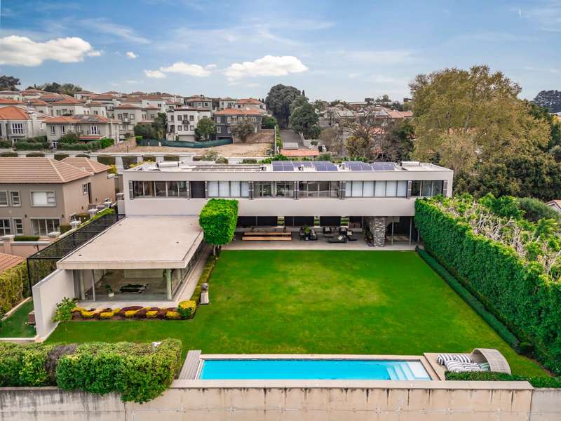 A Home of International Prestige.?ǿWith grand volumes, bespoke finishes, and sheer opulence, this residence, designed by the iconic, Stephen Pellerade, offers a refined masterpiece of contemporary design, state-of-the-art technology with timeless elegance. Security & Technology; Complete peace of mind with private 24-hour guarded security, for the 3 homed estate, 2 further gated entrance, and an Elan Smart Home system. From your phone, you can effortlessly manage; CCTV, alarms, air conditioning, security, the Luton lighting system, audio, and all visuals throughout the property. Arrival & Outdoor Living A large scale, paved driveway and striking entrance welcome you into expansive landscaped gardens. The sliding wooden doors offer the option of privacy or opened with views from the driveway of; manicured lawns framed by sculpted flowerbeds and mature trees ensure complete privacy. The edged position lap pool opens to uninterrupted Sandton skyline views. The integrated entertainment terrace welcomes you to a palatial wooden dining table, a relaxed lounge area, and a stone-clad fireplace - perfect for both summer evenings and cozy winter gatherings. A private guest studio cottage adjoins this outdoor living. For active families and guests, a secluded cricket net. Interior Living The interiors exude warmth and sophistication. An open-plan lounge and dining area are centered around a raised gas fireplace, flowing into the designer kitchen. Wooden paneling and marble countertops combine with a bespoke serving counter, creating an ideal setting for culinary occasions. The separate pantry, laundry, wine cellar, and staff accommodation complete the service areas. Upstairs Retreat A sculptural wooden staircase leads to a pajama lounge/library and study station. Three magnificent en-suite bedrooms feature rich wooden flooring, custom paneling, each with expansive sliding glass windows overlooking lush gardens and leafy suburban views. The En-suite bathrooms showcase marble, mosaic floors, and feature brickwork - a striking fusion of textures and finishes. Master Wing In its own private wing, the master suite is an elegant sanctuary. A spacious lounge/TV area opens to a private astro-turf roof top terrace. The bedroom, finished with soothing tones and premium detailing. A luxurious bathroom with bespoke wall features and a fashion-forward dressing room with generous cabinetry. Additional Features Triple garage (one currently utilised as a home gym) 32 solar panels, 2x 15kVA batteries, and inverter system for full energy independence Advanced Lutron lighting system The stylish home, invites glamorous entertaining and refined family living. A rare modern home at a prestigious address, it redefines luxury living in Johannesburg.