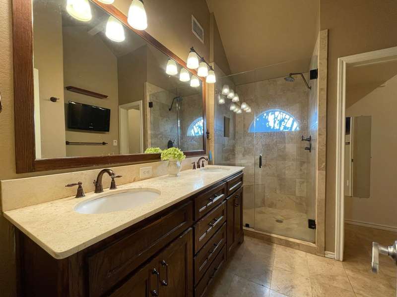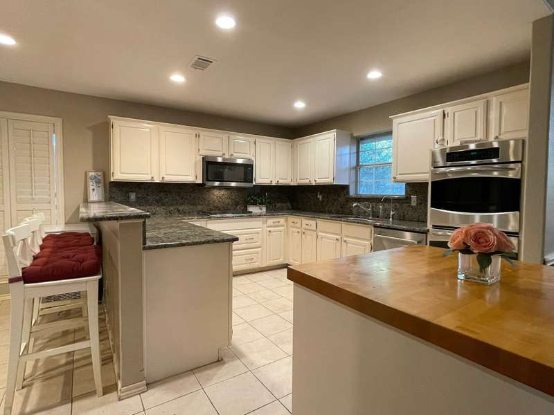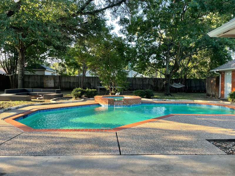 This beautifully maintained single-story home offers five bedrooms, three full bathrooms, and a backyard oasis with a pool and spa on a lush 0.3-acre lot. Designed for both comfort and function, the open floor plan features hardwood floors, plantation shutters, abundant natural light, and thoughtfully designed living spaces.The primary suite overlooks the backyard and includes dual sinks, a walk-in closet, and a private bath. A separate guest suite with its own full bathroom is ideal for multi-generational living, nanny quarters, office or guests. Three additional bedrooms, each with their own closet, share a third full bathroom. The living room offers garden and pool views, while the formal dining room connects easily to the kitchen. A dedicated laundry room with washer, dryer, and ample storage, along with attic spaces.The kitchen is designed for everyday living and entertaining with stainless steel appliances including double ovens and a gas cooktop, two refrigerators, a separate freezer, a spacious island, and a walk-in pantry. The backyard is a true retreat with a sparkling pool, an elevated spa with waterfall feature, and beautifully landscaped surroundings. There are grassy play areas perfect for children or pets, and additional space for a vegetable garden. String lighting and pool illumination create an inviting setting for evening gatherings. The property also includes a detached two-car garage and a pool closet for extra storage.Additional highlights include a whole-home water filtration system with reverse osmosis in the kitchen, and the option for partial furnishings if desired. This home is located in a warm, family-friendly neighborhood within an excellent school district, including Plano West High School, ranked in the top one percent nationally. The property is conveniently close to shopping, dining, grocery stores, houses of worship, and major amenities. This is in the Far North Eruv. No smoking is permitted.