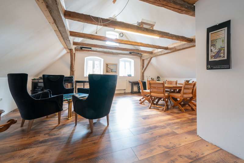 Ready for your dream property? Then please read on! This unique property combines the charm of a historic farmhouse with the advantages of modern renovation and versatile use. The main house was originally built in 1914, but a comprehensive core renovation in 2010 brought the property up to date without losing its special character. The main house welcomes you with a magnificent, double-leaf wooden entrance door and its deep arched windows with glazing bars and shutters. Inside, a cozy living atmosphere is combined with contemporary technology: the central oil heating is complemented by a traditional wood-burning tiled stove, which provides cozy warmth and forms the heart of the house with its cozy stove bench and oven. Next to the house there is a garage and a spacious barn, which offers many options for hobbies and crafts. A further outbuilding in the courtyard completes the ensemble, which can be used flexibly to meet a wide range of needs - whether as a stable, studio or workshop. Particularly noteworthy is the adjoining hall with workshop, which is equipped with a crane system and vehicle wash box. A separate apartment was also built above the production area - ideal for guests, employees or a cross-generational living solution. The property offers additional options for animal lovers: A stable building allows animals to be kept, including large animals such as horses. The extensive plot also opens up the opportunity for self-sufficiency, with the fruit and vegetable garden already planted or for keeping animals in a natural environment. Another highlight: a separate, already developed part of the plot with its own parcel number (approx. 1,792 m²) allows the development of up to three residential buildings and thus opens up additional potential for families or investors. The infrastructure is also impressive: a high-speed internet connection makes working from home ideal and opens up space for modern, IT-supported living and working models. The large-scale 5 kWp PV system with 16 kWh storage (expandable on request) provides additional modern convenience and independence. This property is ideal for people who are looking for something special: a successful combination of historical charm, modern comfort and limitless versatility - for living, working and a life close to nature under one roof. Are you interested? Then we look forward to a personal meeting in our real estate store or your contact request via the inquiry form.
