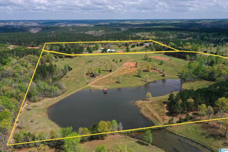 PICTURESQUE & PRIVATE 36 Acres with a 6-acre STOCKED POND of Trophy Bass & Bream with a siphon system PLUS a Relaxing Large Covered Fishing Dock. Artesian Well/ Natural Spring Feeds this Pristine Pond. Property rolls and is FENCED for separate rotating PASTURES if needed. EXCEPTIONAL BUILDING LOCATIONS. Private & Quiet road with NO THROUGH TRAFFIC. Planted pine & Fruit Trees with current Garden Location. Drive-able Firebreak Perimeter. Established Wildlife Food Plots. Idyllic Retreat One hour from B'ham. Adjoining Property For Sale: 19.3 Acres with a 2,500 sq. feet, 3 bedroom House plus a Greenhouse, 2 Pole Barns, 2 Additional Buildings, MLS for $549,900.