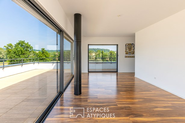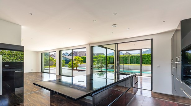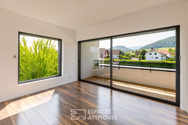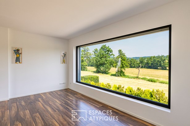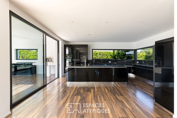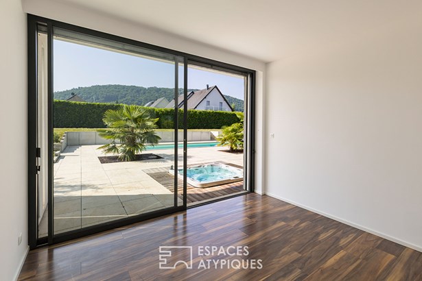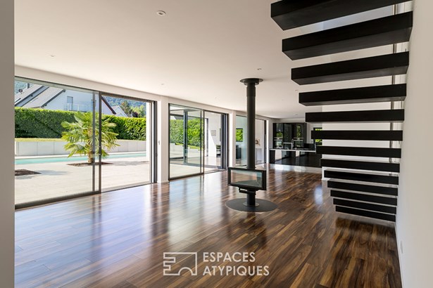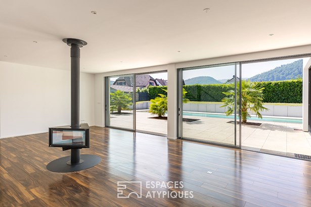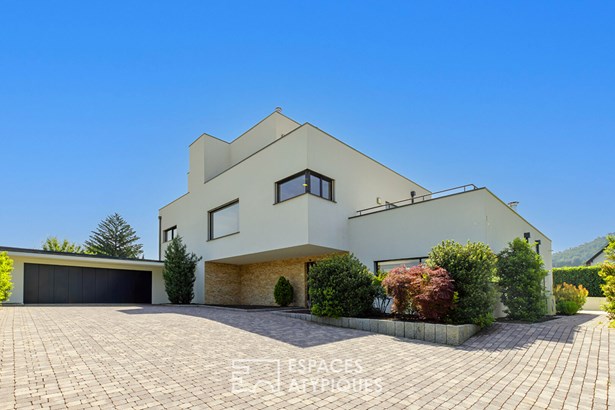 Unique in its fluid architecture, its overall volume and its location just a stone's throw from the Swiss border, this contemporary villa perfectly embodies the spirit of a singular property at the crossroads of borders.