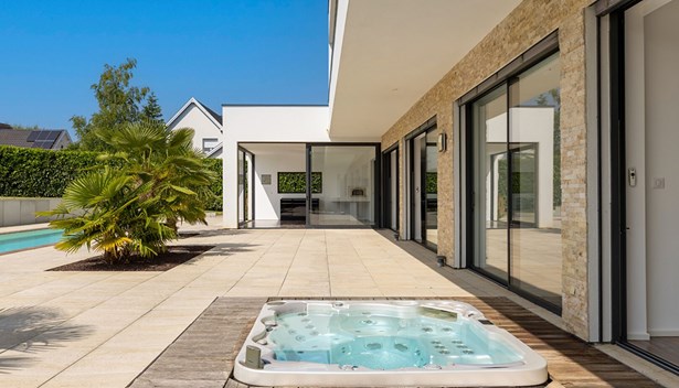 Located in the absolute tranquillity of a leafy cul-de-sac just a stone's throw from the Swiss border, this contemporary villa offers exceptional space on a wooded plot. Built in 2018, it enjoys a sought-after location and a rare level of amenities, including a lap pool, jacuzzi, panoramic terraces and triple garage.