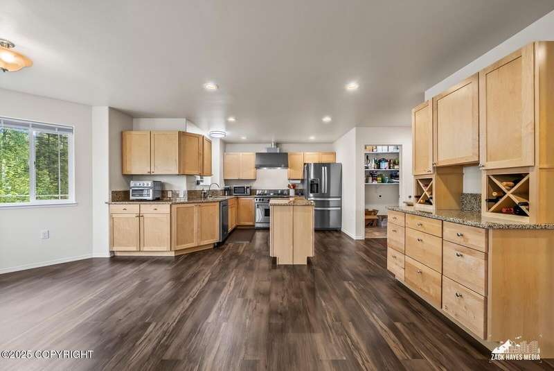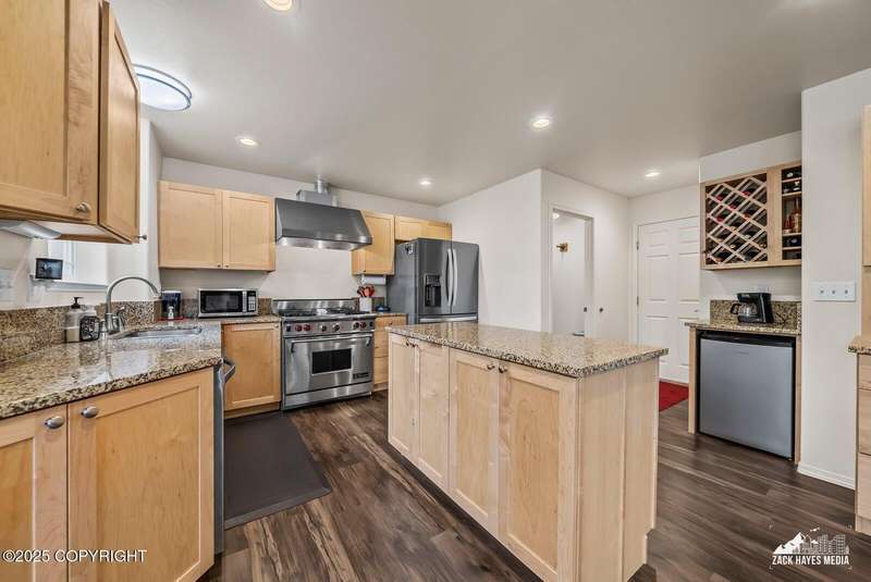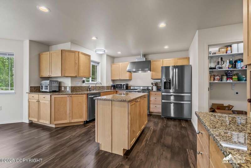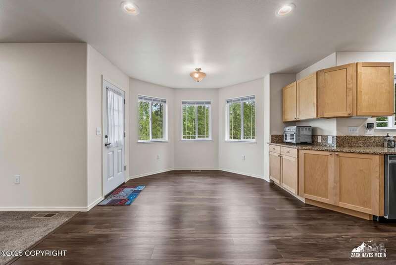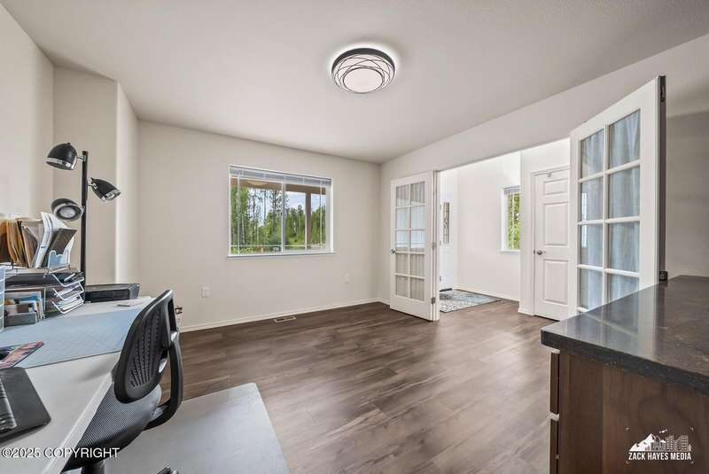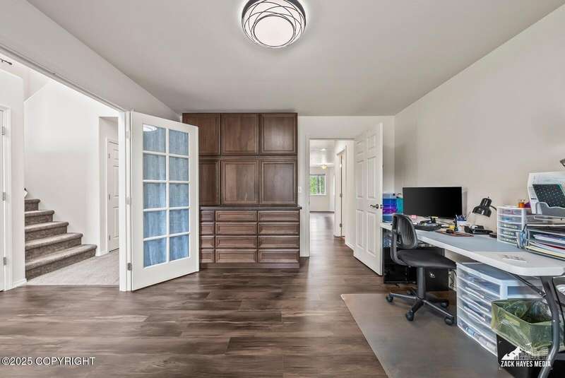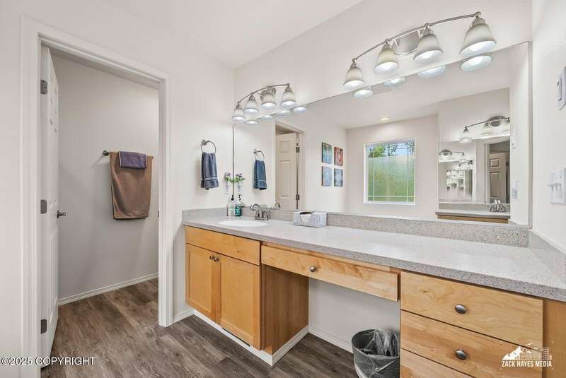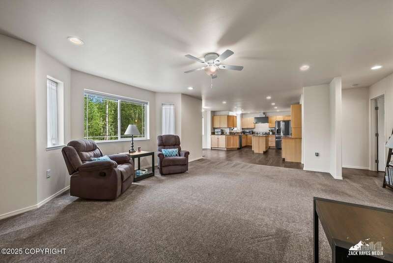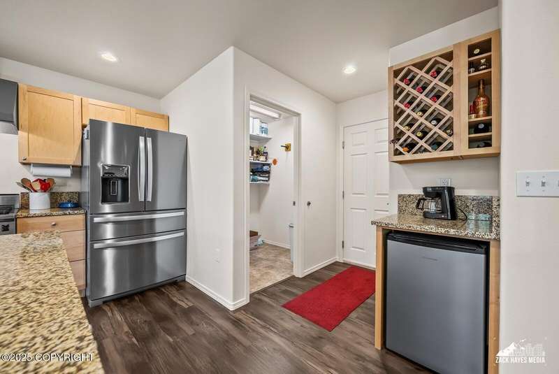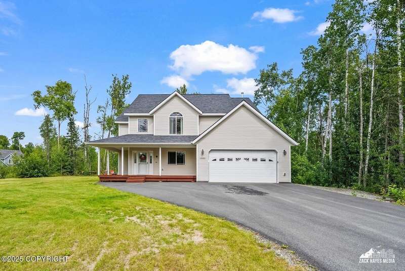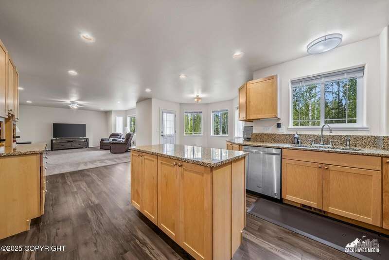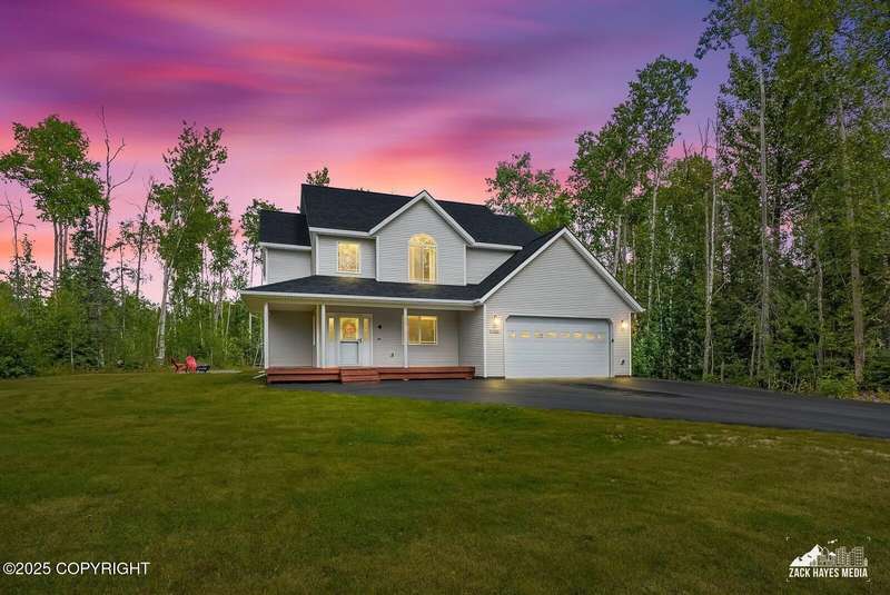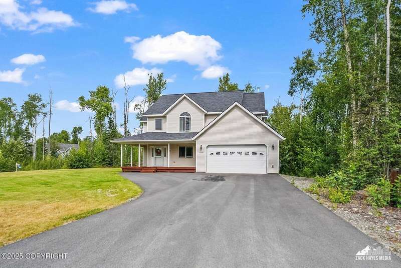 Beautifully maintained single-family home on over an acre of pristine Alaskan landscape, offering ample space to expand or build your dream shop. This 4-bedroom, 3-bath home is located in a quiet, family friendly neighborhood, with optional access to the nearby airstrip including tie down opportunities. The open concept layout is filled with natural light and features a gourmet kitchen equipped with top-of-the-line stainless steel appliances, granite countertops, a pantry, and an oversized island ideal for cooking and gathering. The primary suite is a peaceful retreat with a spacious ensuite bath and a large walk-in closet. Three additional bedrooms, along with a dedicated office, provide plenty of space for family, guests, or working from home. The generous bathrooms offer ample room for daily living. With over 2,300 square feet of living space, the home also includes abundant storage throughout, making it as practical as it is inviting. Enjoy the serenity of mature trees, a beautifully manicured lawn, and room to grow.