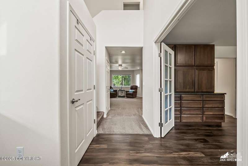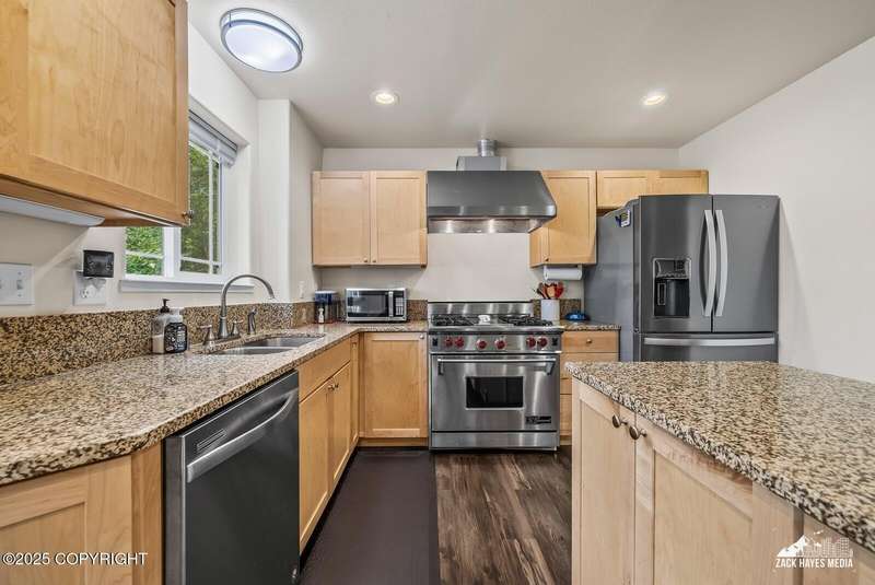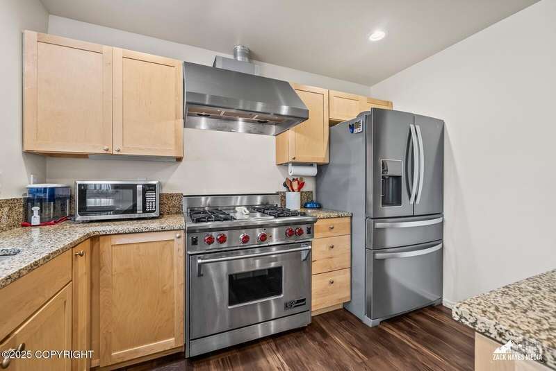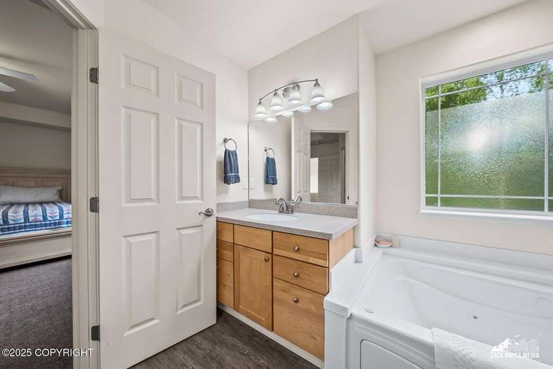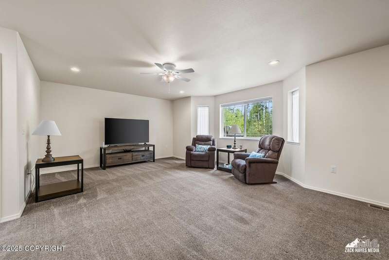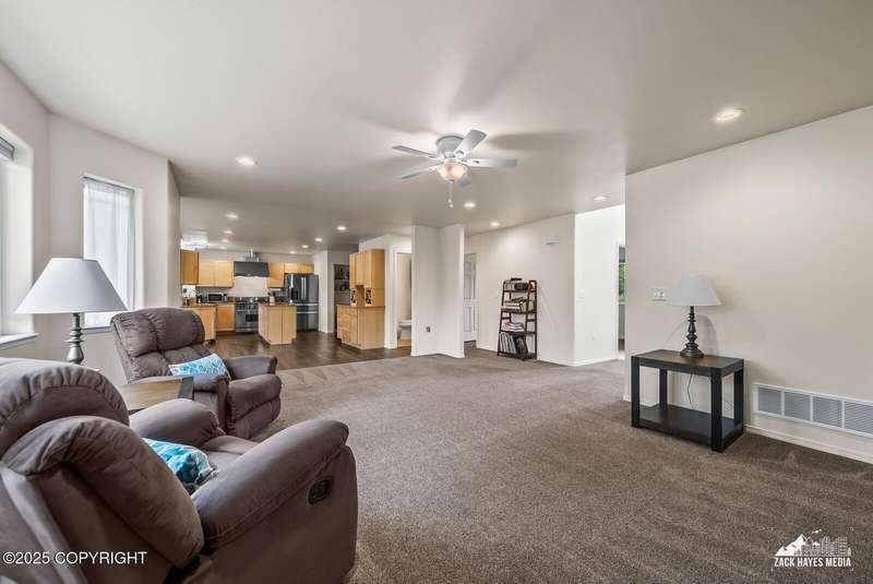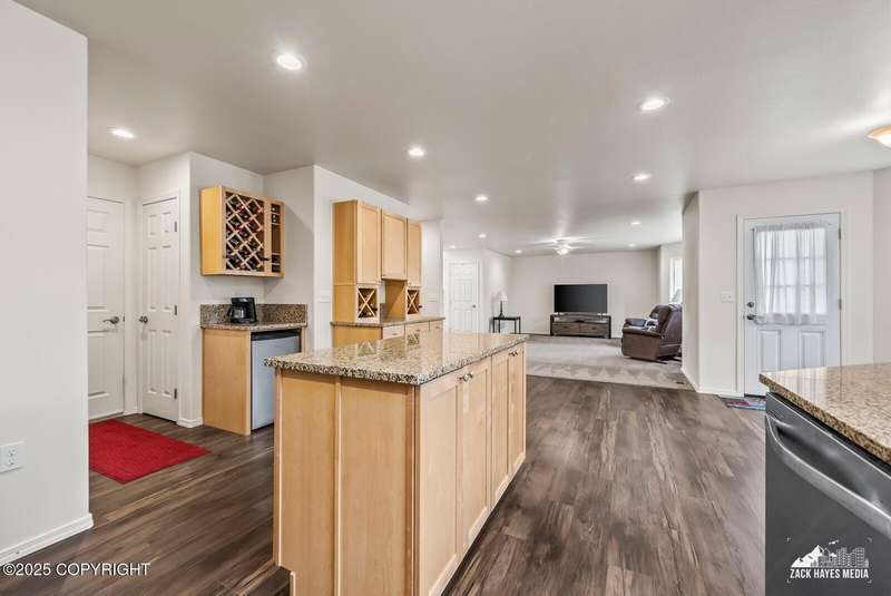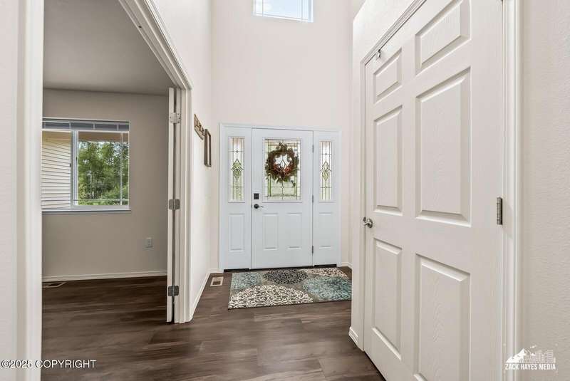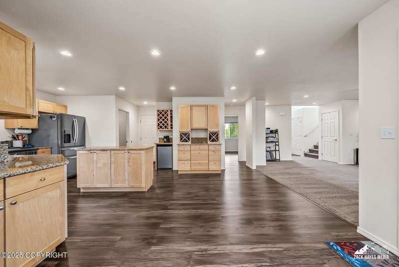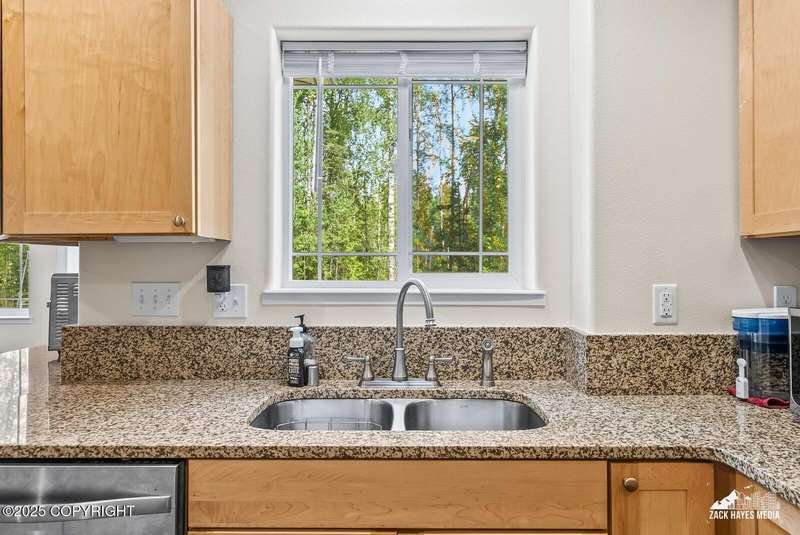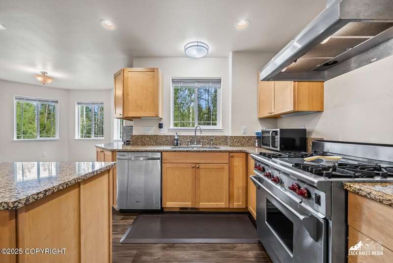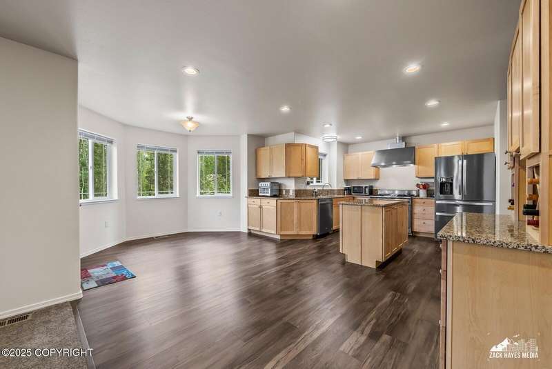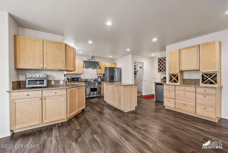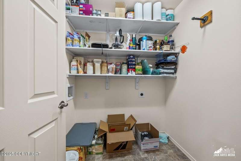 Beautifully maintained single-family home on over an acre of pristine Alaskan landscape, offering ample space to expand or build your dream shop. This 4-bedroom, 3-bath home is located in a quiet, family friendly neighborhood, with optional access to the nearby airstrip including tie down opportunities. The open concept layout is filled with natural light and features a gourmet kitchen equipped with top-of-the-line stainless steel appliances, granite countertops, a pantry, and an oversized island ideal for cooking and gathering. The primary suite is a peaceful retreat with a spacious ensuite bath and a large walk-in closet. Three additional bedrooms, along with a dedicated office, provide plenty of space for family, guests, or working from home. The generous bathrooms offer ample room for daily living. With over 2,300 square feet of living space, the home also includes abundant storage throughout, making it as practical as it is inviting. Enjoy the serenity of mature trees, a beautifully manicured lawn, and room to grow.