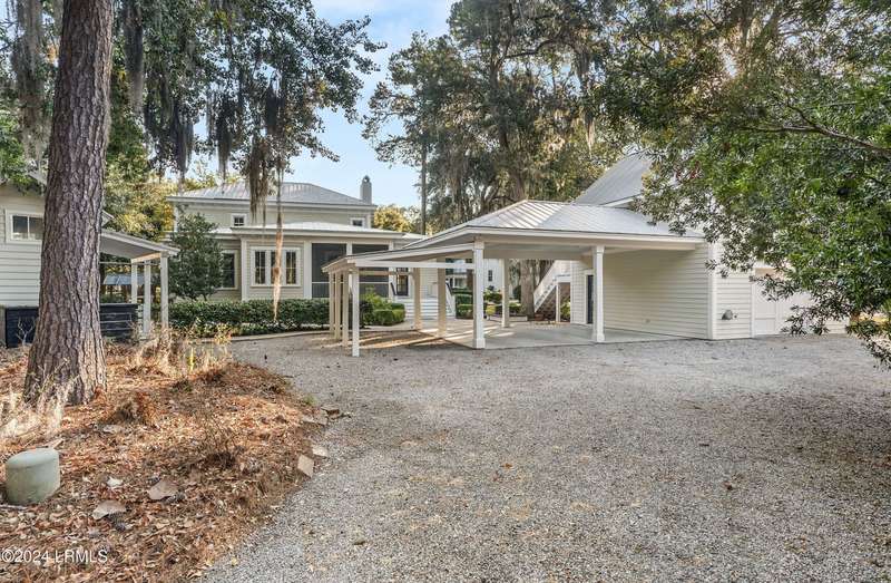 Discover the charm and sophistication of 29 Grace Park, a beautifully remodeled home located in the award winning Habersham neighborhood of Beaufort, South Carolina. Habersham is known for its vibrant community atmosphere, tree-lined streets, parks, charming shops and restaurants. This is Lowcountry living at its finest. Nestled on a corner lot across from the tranquil Mum Grace Park, the main house features 3,748 sq ft of high-end living. With 4 bedrooms, 3.5 bathrooms, and a thoughtful blend of modern upgrades and timeless Southern Charm, this meticulously renovated home is designed for comfort, luxury, and convenience. There is an additional 480 sq ft studio apartment located above the garage making it perfect for guests or an office. The spacious primary suite is located on the first level. It offers privacy and convenience complete with a private laundry area inside the walk-in closet. The second level features 3 additional bedrooms , two full bathrooms, and an additional laundry room to make household tasks easier. The heart of the home has been reimagined with a full kitchen remodel, including custom cabinetry, modern appliances, and a newly added walk-in pantry for exceptional storage. The former laundry room off the kitchen now functions as a well-appointed mud room. Every space in the home has been refreshed with new paint and refinished floors, bringing warmth and elegance throughout. All of the bathrooms were taken down to the studs and rebuilt with new tiling, custom cabinetry, and luxury finishes, creating spa-like retreats. Both the family room and living room have new cabinetry and shelving, and the fireplace has been re-tiled adding a charming focal point. Every outlet, light fixture, and ceiling fan in the main house has been replaced, ensuring both beauty and efficiency. The property includes a one car garage, a two bay carport, and a garden shed, providing ample parking and storage. With its elegant renovations, thoughtful amenities, and unmatched location, 29 Grace Park is move-in ready and waiting to welcome you home. This material is based upon information, which we consider reliable, but because it has been supplied by third parties, we cannot represent that it is accurate or complete, and it should not be relied upon as such.