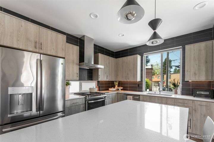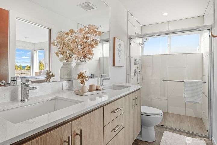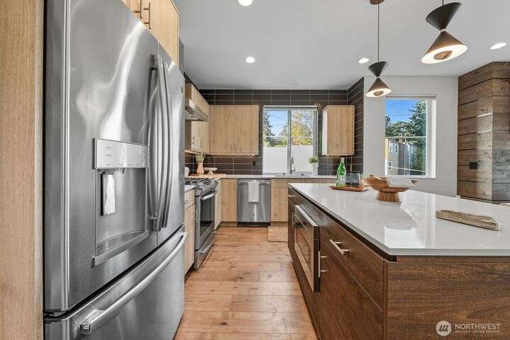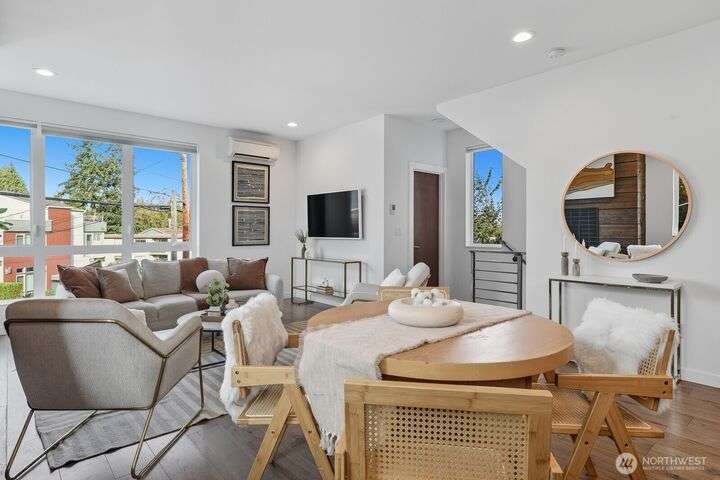 Lower monthly payments! Seller offering rate buy-down with accepted offer. Inquire! Blending elegance & eco living, this standalone home embodies convenience. 3 spacious bedrooms, 2.5 baths, & unmatched craftsmanship you'll find warm oak floors, focal gas fireplace & seamless open-concept design. Luxe kitchen with large eat-at island flows to dining, living & powder rooms. Bright & airy bedrooms are complemented by sleek bathrooms & efficient climate control for year-round comfort. Ascend to your private rooftop terrace & soak in stunning Olympic Mountain & Sound views, complete with gas, power + water. Effortless outdoor living. With garage & timelessly curated accents throughout, this Sunset Hill home sets a new standard crafted for you.