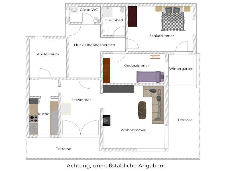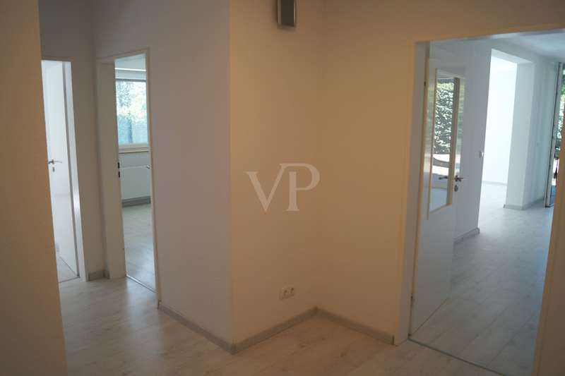 First floor apartment with flair and modern furnishings in a good location Welcome to your new home With around 111 m² of living space, you can expect a well thought-out room layout, high-quality furnishings and a spacious outdoor area - ideal for couples or small families with space requirements. The building dates back to 1978 and was extensively modernized in 2020. Today, you can enjoy contemporary comfort and a cozy living atmosphere. Live and enjoy The heart of the apartment is the large living and dining area. Thanks to floor-to-ceiling windows, it is flooded with light and offers direct access to the sheltered terrace. Elegant downlights create an atmospheric ambience here in the evening. From the terrace, you can access the 250 m² private garden with automatic sprinkler system - easy to maintain and ideal for relaxing hours outdoors. A tiled stove provides cozy warmth in winter and rounds off the ambience perfectly. Kitchen and rooms The kitchen, which was renovated in 2020, is functionally equipped and invites you to cook together. There are five rooms in total, including two bedrooms that can be used flexibly as children's rooms, guest rooms or studies. The modern bathroom with underfloor heating and floor-level shower offers wellness comfort in everyday life. There is also a practical guest toilet. Comfortable extras Keyless access thanks to modern code technology Adjacent conservatory - can be used all year round as a retreat with a view of the countryside New windows and radiators for energy-efficient living Central heating system for reliable heat supply Communal swimming pool in the building - for the exclusive use of owners and proportionately owned Location and surroundings The apartment is located in a well-kept apartment building in an attractive location. Short distances to shopping facilities, leisure activities and public transport make everyday life convenient, while the large garden and sheltered terrace offer privacy and retreat. Conclusion This first floor apartment combines modern comfort, generous open space, special extras such as the building's own swimming pool and an attractive location - an ideal home to feel at home in. If this appeals to you, we look forward to presenting this special property to you in person.