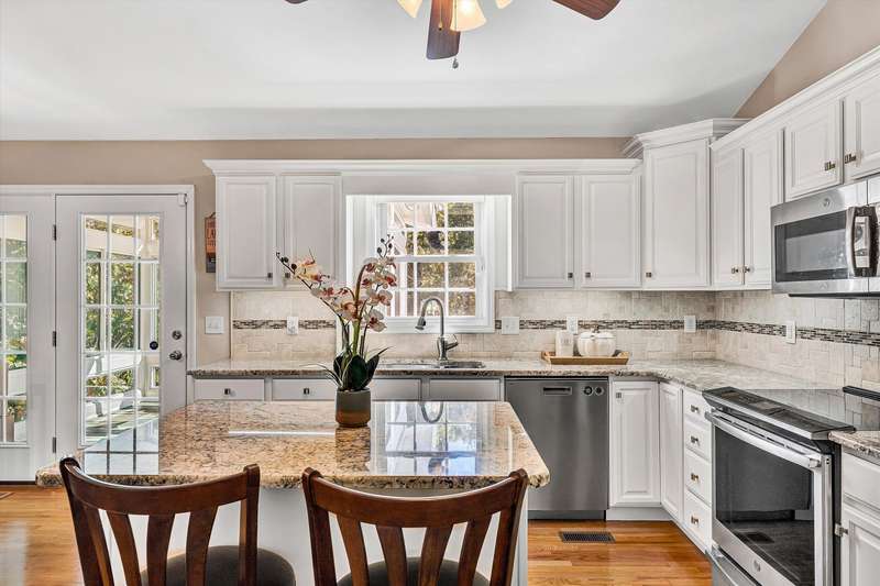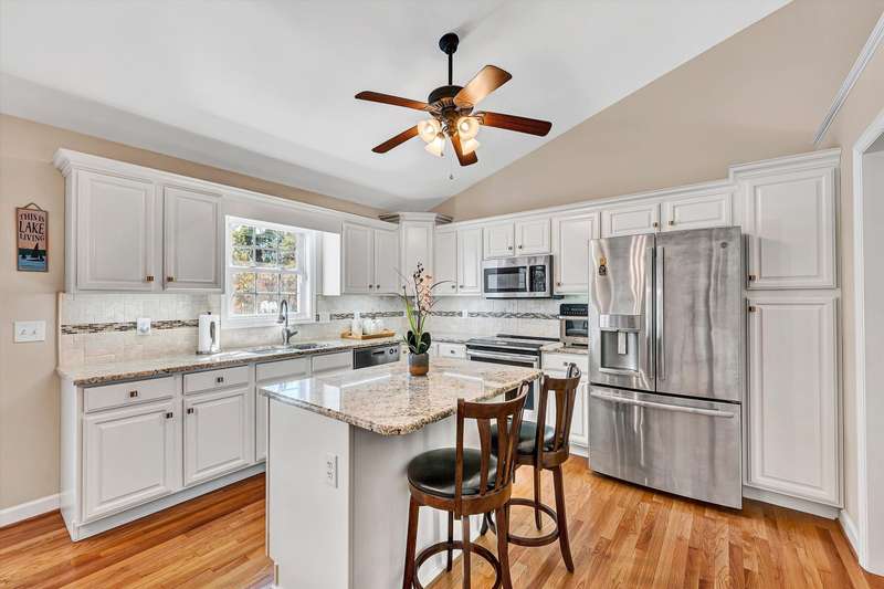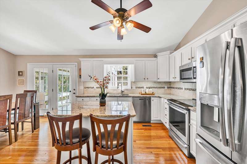 Beautifully maintained and landscaped home. Fall in love with all the updates including granite countertops in the kitchen w/ tile backsplash, lots of cabinet space and is a cooks dream with SBS stainless fridge , induction cook top, regular/convention oven, microwave. Living Rm,Dining and Kitchen with wood floors,Large 4 season sunroom with LTV flooring w/ its own mini split heating and cooling. Features 3 spacious bedrooms, 3 full baths. Master bath has tile surround, granite top vanity and beautiful tile flooring. Living room has cast iron gas stove heater & lower level rec room has a gas fireplace w/ Tv mounted over fireplace that conveys. Nestled on a large 1.4 Corner lot. Professionally landscaped with beautiful new patio. Firepit, Large detached workshop/Storage shed