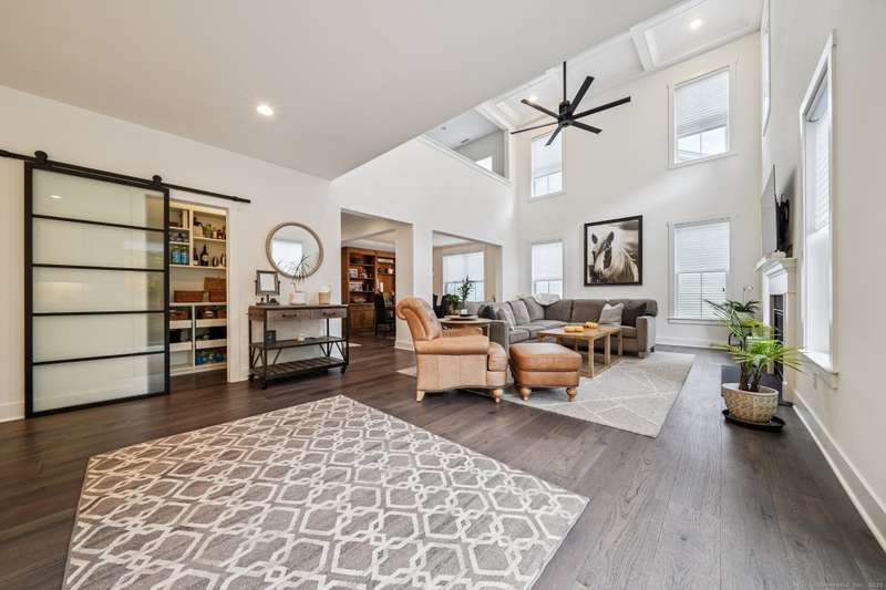 Don't miss the chance to own a Toll Brothers' built premier quality home! This is the first and only resale in Trumbull's Enclave at Daniels Farms, an ideal location with an 8-minute ride to Metro North and a 90-minute commute to NYC, plus access to the town's top-ranked schools and parks. Just over two years young, this "Saybrook" Colonial features everything you expect from a top builder, enhanced by over $100,000 in custom upgrades from the current owners. The main level welcomes you with front flex room currently an office but 4th br potential with adjacent 1/2bath. Beyond lies open dining/ great room area with vaulted coffered ceiling, pecan flooring, and gas FPLC leading to a fabulous gourmet JennAir kitchen w .walk-in pantry & walk-out patio. Upstairs offers a luxurious primary suite, two additional bedrooms, and a full bath. Finally, a 1,399 sq ft lower level with 9-foot ceilings and a roughed-in bath is ready for your finishing touches. Much more to see! (Please refer to the U