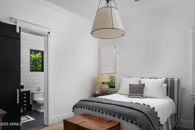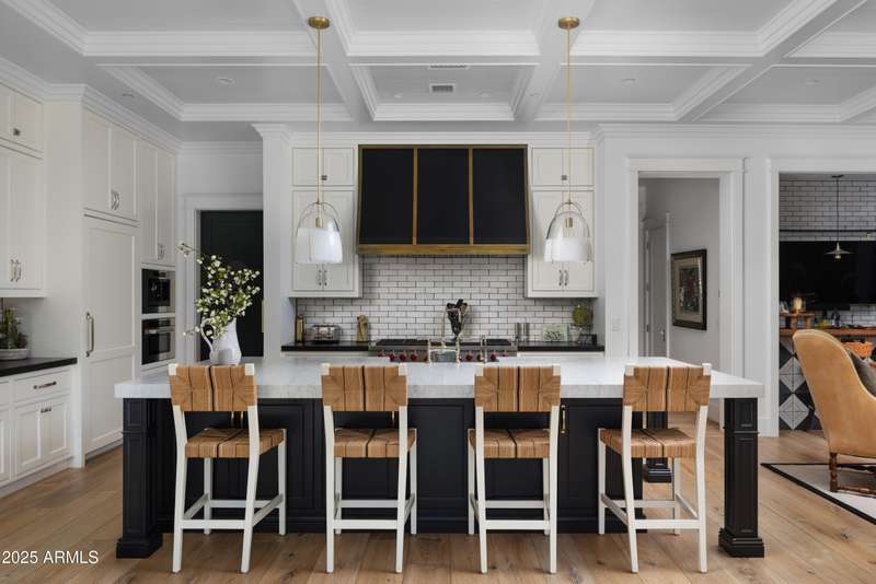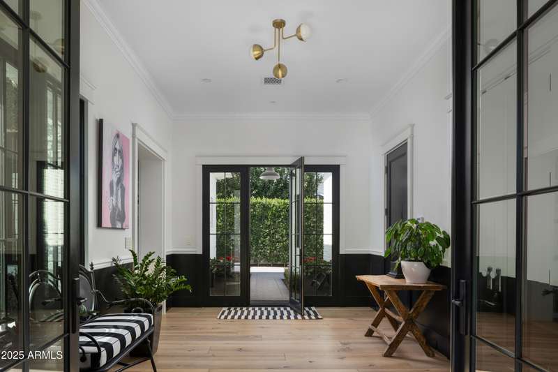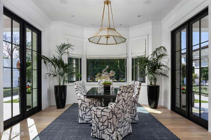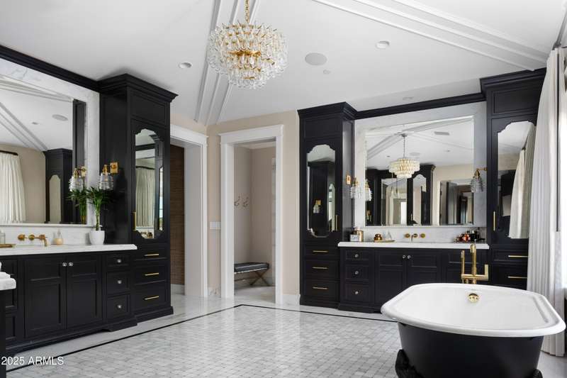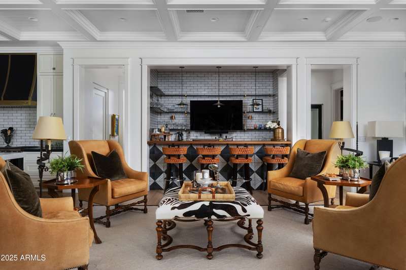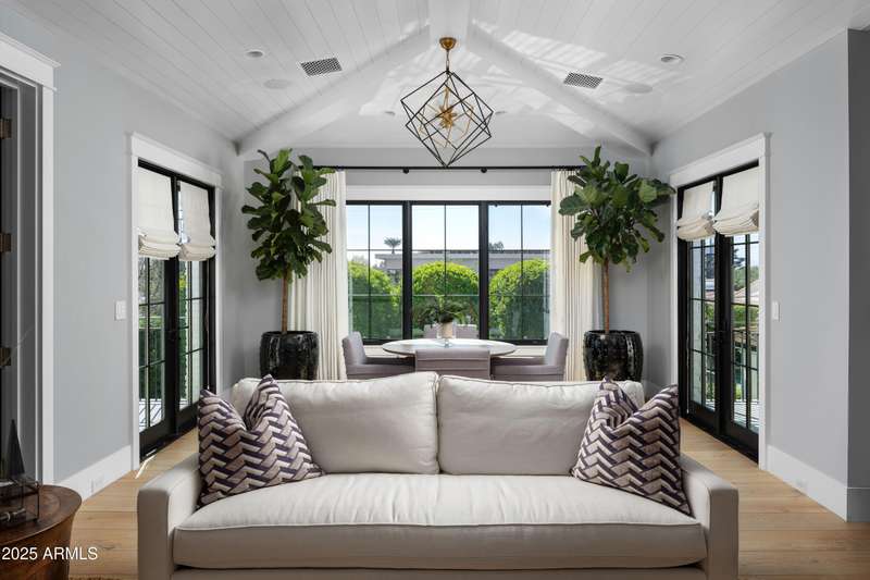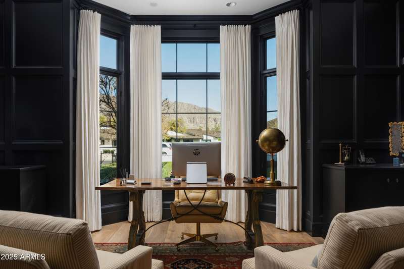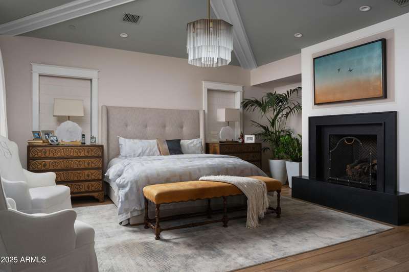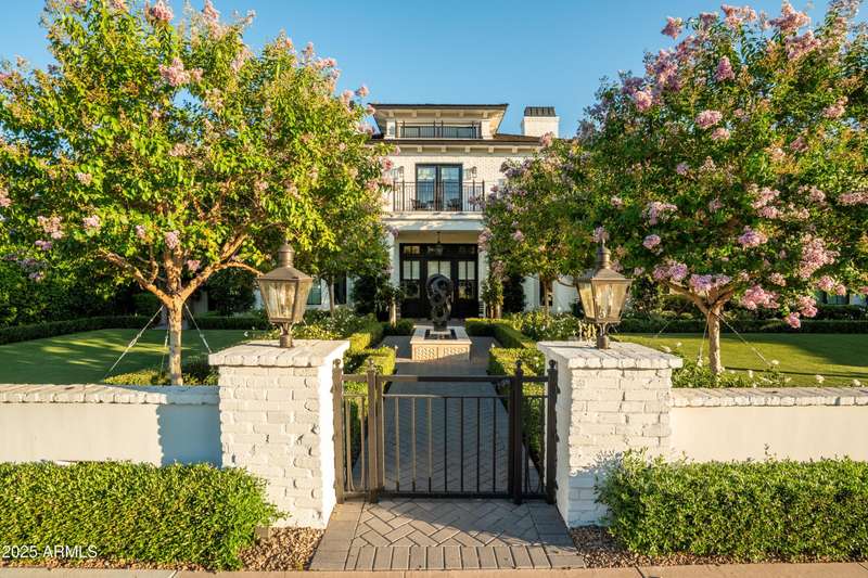 Built by Brimley Development in collaboration with celebrated designer Caroline DeCesare, this exquisite newer construction is perfectly positioned on over half an acre in one of Arcadia Proper's most desirable cul-de-sacs. As featured in Phoenix Home & Garden, the home showcases impeccable attention to detail, with curated finishes and refined design throughout every inch of the property. Sophisticated yet welcoming, the residence exudes a rare balance of luxury and comfort. From custom-crafted millwork and dramatic ceiling treatments to rich color palettes and striking designer lighting, each space feels thoughtfully composed. The floor plan flows intuitively—offering both intimate rooms and expansive gathering areas that invite entertaining on any scale. At the heart of the home, the gourmet kitchen is a true showpiece, outfitted with Wolf and Sub-Zero appliances, a generous butler's pantry, and seamless integration into a casual dining nook, a stylish lounge with an elegant wet bar, and a warm, sophisticated living area. It's a layout designed for connection and effortless hosting. Take the staircase or private elevator to the stunning primary suite, where sweeping Camelback Mountain views set the backdrop for a serene retreat. Highlights include a spa-inspired bath, a wet bar with a Wolf coffee system, and a sprawling custom closet. The home also features two flexible bonus rooms, a dedicated office, and a formal dining room accented by a temperature-controlled wine wallperfect for both daily living and formal entertaining. Each guest suite offers its own ensuite bath, while five thoughtfully placed fireplaces bring warmth and ambiance throughout. Outside, the property transforms into a private resort. Mature landscaping and verdant trees surround a heated pool and spa, accented by peaceful fountains. A custom putting green and a dedicated pickleball court add recreational appeal, while luxurious turf ensures year-round greenery with minimal upkeep. Sculptural elements and classic French pottery lend an artistic, timeless elegance to the outdoor setting. This extraordinary residence combines enduring style, contemporary luxury, and unmatched amenitiesdelivering an elevated lifestyle in the heart of Arcadia Proper. A truly rare opportunity to own a one-of-a-kind masterpiece.