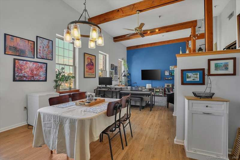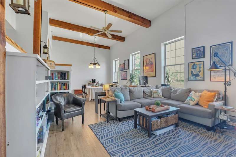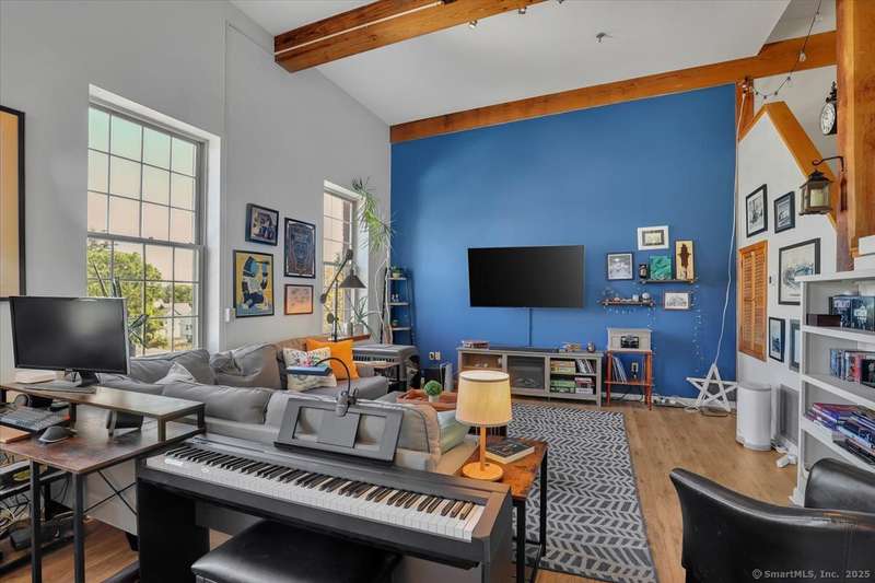 With ceilings that soar, wood beams and wood floors; this property will make a lover of charm feel immediately at home. This amazing brick building is aptly on the National Register of Historic Places, blending a vintage feel and modern conveniences. A quick 10 minute walk will get you to Wesleyan University or downtown to a multitude of restaurants and activities. If you're more of a homebody, you can stay right at home and enjoy wonderful views of Middletown from either of your two new decks located off both of the bedrooms through brand new sliding glass doors. Additional new items are the furnace and the roof. Garage parking is another bonus of this particular unit, as it's not available to every unit in the building. You'll also have access to a bike room, a composting program and an EV charging station. There is a wonderful sense of community with the association hosting summer and holiday parties throughout the year. This is a chance for some spectacular living. **Seller is offe