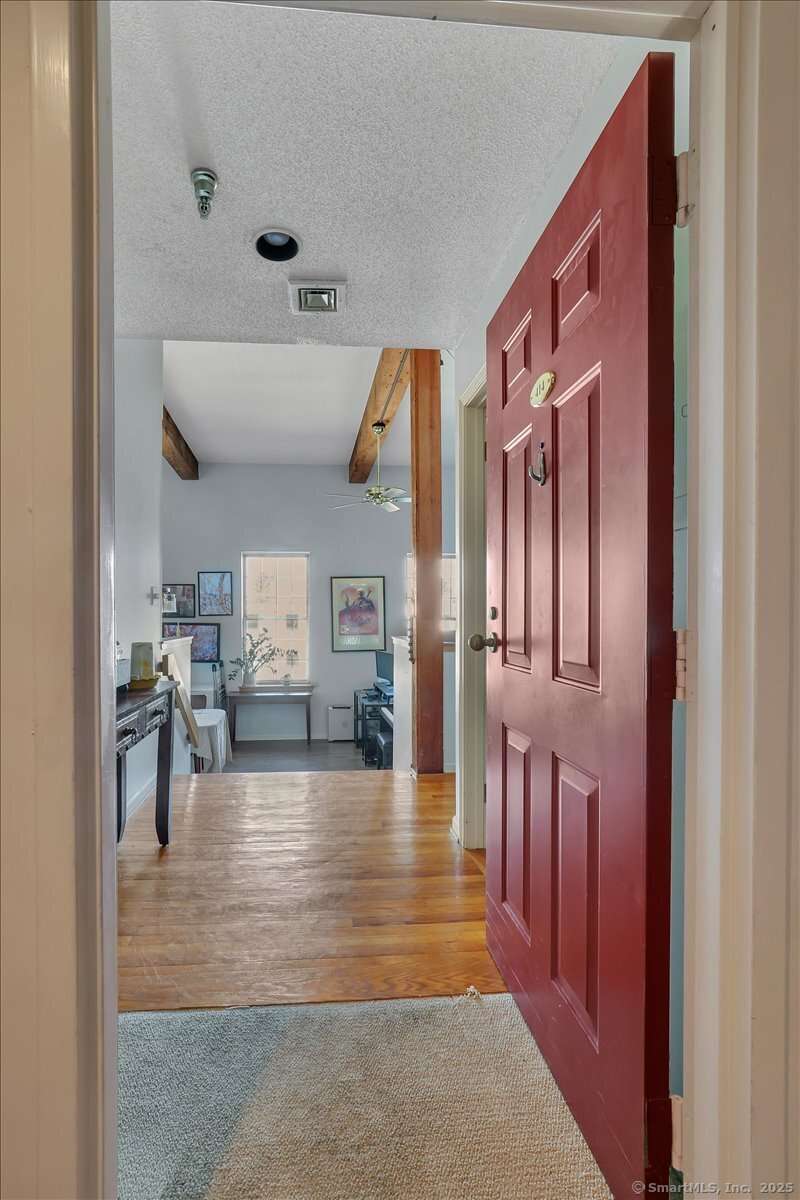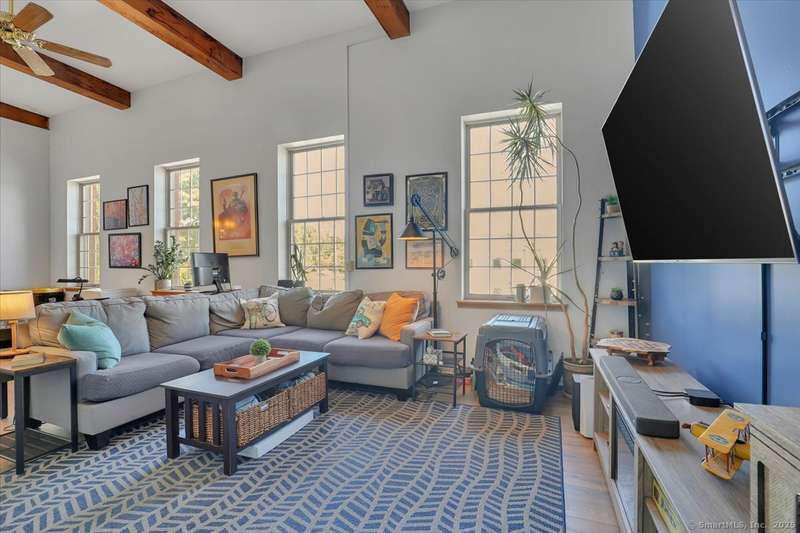 With ceilings that soar, wood beams and wood floors; this property will make a lover of charm feel immediately at home. This amazing brick building is aptly on the National Register of Historic Places, blending a vintage feel and modern conveniences. A quick 10 minute walk will get you to Wesleyan University or downtown to a multitude of restaurants and activities. If you're more of a homebody, you can stay right at home and enjoy wonderful views of Middletown from either of your two new decks located off both of the bedrooms through brand new sliding glass doors. Additional new items are the furnace and the roof. Garage parking is another bonus of this particular unit, as it's not available to every unit in the building. You'll also have access to a bike room, a composting program and an EV charging station. There is a wonderful sense of community with the association hosting summer and holiday parties throughout the year. This is a chance for some spectacular living.