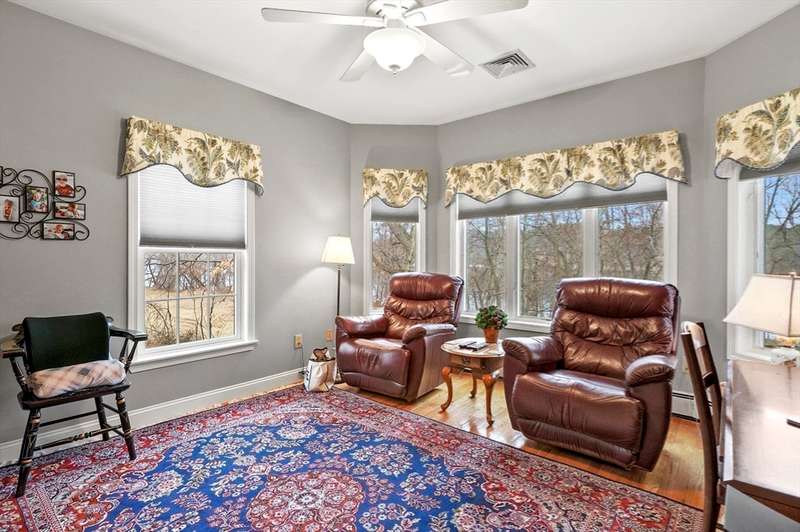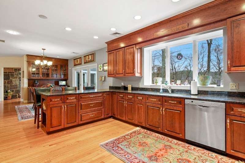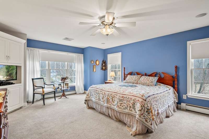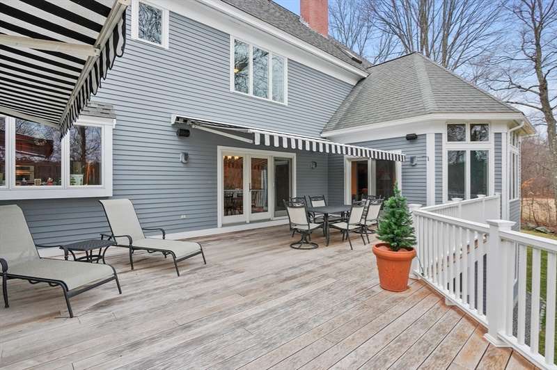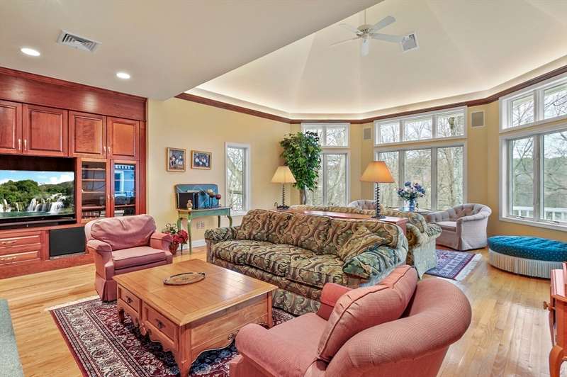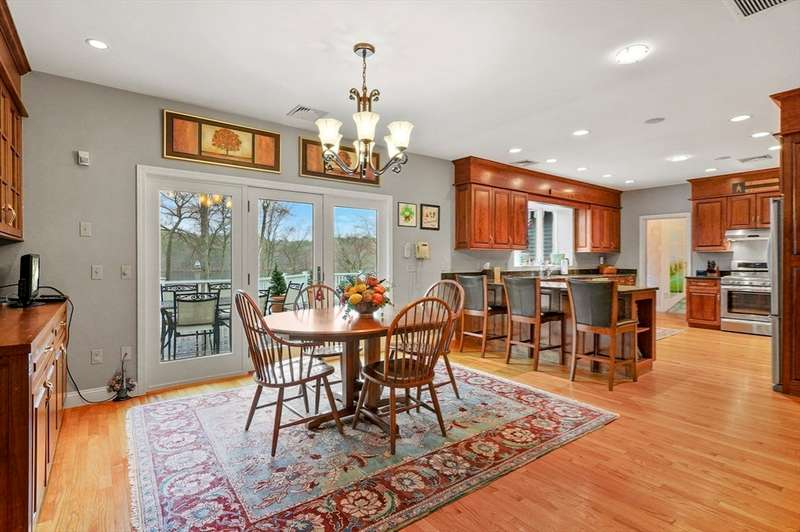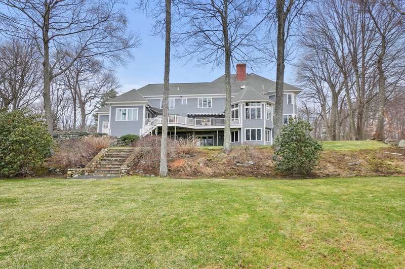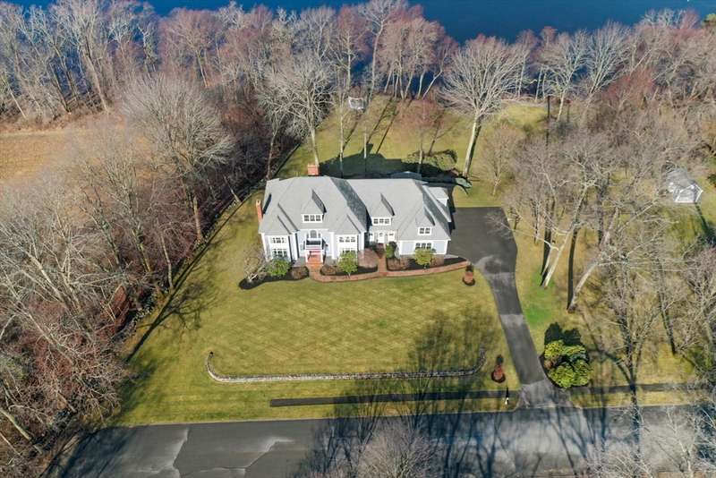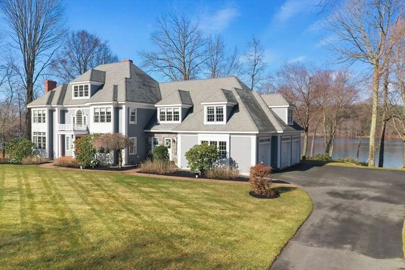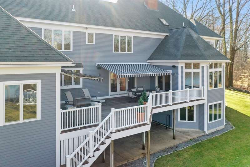 First time on the market! Discover the epitome of luxury living in this meticulously maintained custom Goodwin home perfectly situated on the banks of the Merrimac River. This stunning residence boasts thoughtful design offering breath taking views from nearly every angle. With five spacious bedrooms and 4.5 bathrooms two of which feature en suite amenities - this home effortlessly combines comfort and elegance. The heart of the home is the gourmet kitchen with atrium doors that lead you to an expansive deck ideal for dining and entertaining while soaking in the river views. There is also a cozy den, an oversized family room with fireplace, a formal living room, and a dining room. The lower level features a generous rec room perfect for family gatherings. The professionally landscaped yard, three car garage, state of the art systems, this home has all the modern conveniences you could desire. The neighborhood association has a dock and association for mooring boats.