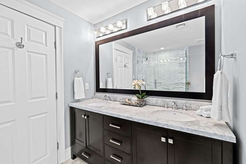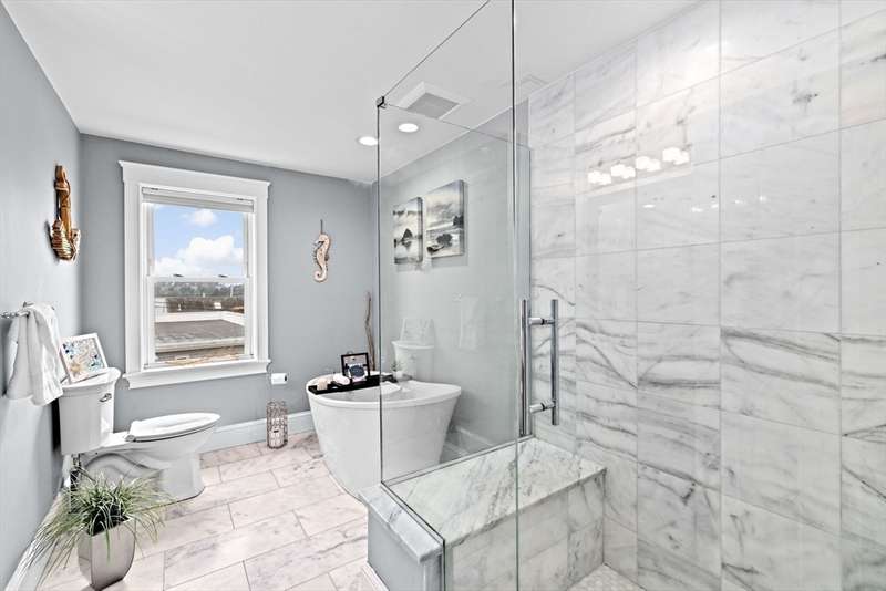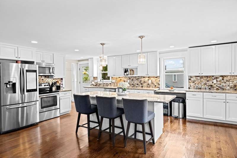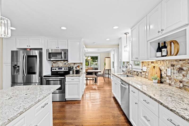 Located in coveted Sunset Point, this coastal gem, beautifully renovated in 2017, offers four levels of versatile living with bay and Worlds End views. The main floor features a bright, open kitchen, dining, and living area with custom built-ins, gas fireplace, and large island, ideal for everyday living and entertaining. The dining area opens to a back deck for easy indoor-outdoor flow. A first-floor bedroom offers flexibility for guests or a quiet study. Upstairs, the primary suite includes a spa-like bath, walk-in closet, and private balcony. Two additional bedrooms and a full bath complete the second floor. The top floor is perfect for a studio, media room, or home office with its own balcony. The finished lower level includes a wet bar, gas fireplace, and full bath. Additional highlights include central air, a whole house generator, hot tub, shed, sprinkler system, public water, and nearby boat ramp.