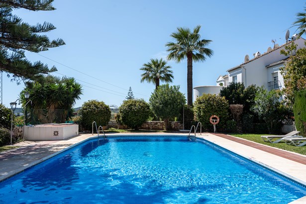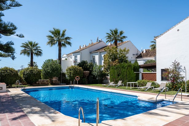 Unique opportunity in Mijas Golf!Discover this exclusive townhouse bathed by the Andalusian sun and surrounded by the uninterrupted green of the golf course. Distributed on four independent floors connected by an elegant interior staircase, this home offers privacy and comfort on each level.Main features- Three bedrooms with en-suite bathrooms: Each bedroom has its own full bathroom, ensuring an intimate and comfortable space for all residents.- Guest bathroom: An additional toilet on the first floor for visitors and day-to-day comfort.- Large outdoor patio: Ideal for outdoor breakfasts, gatherings with friends or simply enjoying the sunny weather.- Communal swimming pool: Perfect for cooling off in summer, surrounded by a well-kept Andalusian-style environment.- Communal parking: Assigned parking space for your vehicle, with direct access to the urbanization.Distribution by floors1. Ground floor: Entrance hall, guest toilet and exit to the patio.2.Second floor: Br