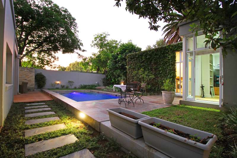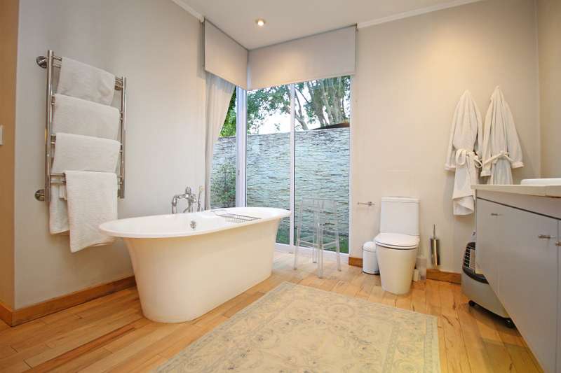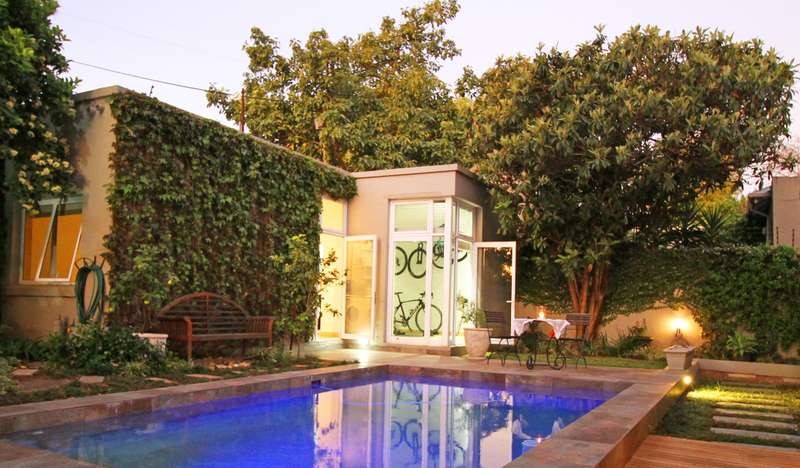 As the gate slides open, you are immediately struck by the care and craftmanship that defines this lovely home. Set in an immaculately maintained garden, every corner of this home reflects thoughtful design and refined simplicity. A truly move in ready sanctuary. Spacious open plan living areas feature wild Cherrywood floors, the double -volumed, trussed Isoboard ceiling provides superior insulation, and working in conjunction with the fireplace, keeps the home warm in Winter and naturally cool in Summer. Tall sliding doors connect the lounge and dining area to the deck, pool and manicured garden, perfect for seamless indoor-outdoor living. The kitchen includes a custom made 2 m Gregor Jenkin metal table, gas hob and oven with electric grill and large sliding doors that also open out to the garden. A light-filled office just off the lounge area includes a window seat and tasteful cabinetry, ideal for working from home. The main bedroom suite is a peaceful retreat also with Cherrywood floors, built-in cupboards, fitted blinds, air conditioning and a spacious en-suite bathroom with heated towel rails and doors opening out to a private tranquil garden with an outdoor shower and modern water feature. The second en-suite bedroom is equally well appointed, with the same beautiful finishes and attention to detail. THE BEAUTIFUL GARDEN COTTAGE is a seamless extension of the main home mirroring design elements including the custom height doors in the bedroom which once again open out onto the garden, a large bathroom and a fitted kitchen with space for 2 appliances, continuing the open airy feel. This home is energy efficient, featuring 6 solar panels and 2x 5kVA batteries, ensuring reliable off the grid living. Every element of this home has been crafted to perfection, a rare offering that balances modern living with timeless elegance. -covered parking for 2 cars -automatic exterior lights -cottage -bottled gas -solar/inverter -outside shower -alarm -storage