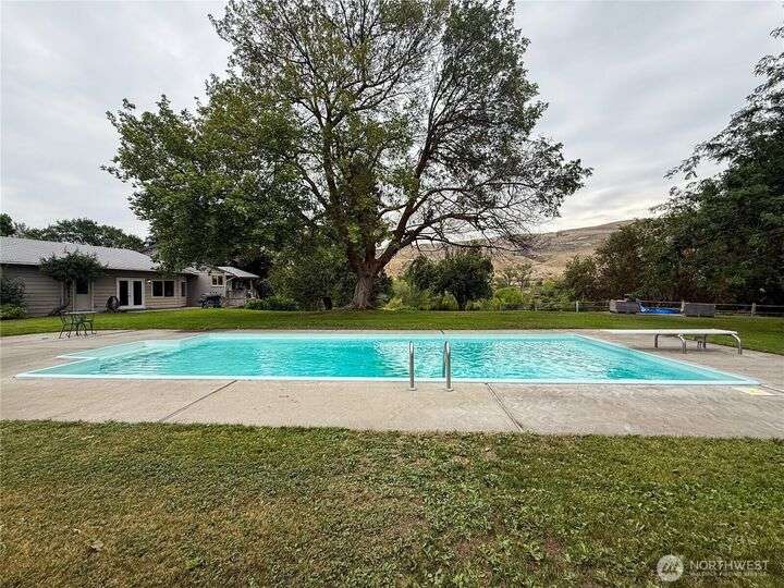 Gracious 3 bed, 2+ bath home w/full basement nestled on 1.9 ac., 200ft of waterfront, pasture on lower part of property. All this and a sparkling in-ground pool. Your paradise down a private lane. Spacious, bright living area with dining area and welcoming deck. Inviting sunken family room/sun room, half bath. Kitchen is expansive with generous counter space and cabinet storage. Nice sized primary bedroom with lots of closet space and large primary bathroom. Attached double car garage. Full basement features large entertaining area with laundry nearby--easily convertible into a dedicated lower level kitchen. Two bright bedrooms, and an additional bathroom complete the area with patio and outdoor access for possible lower level apartment.