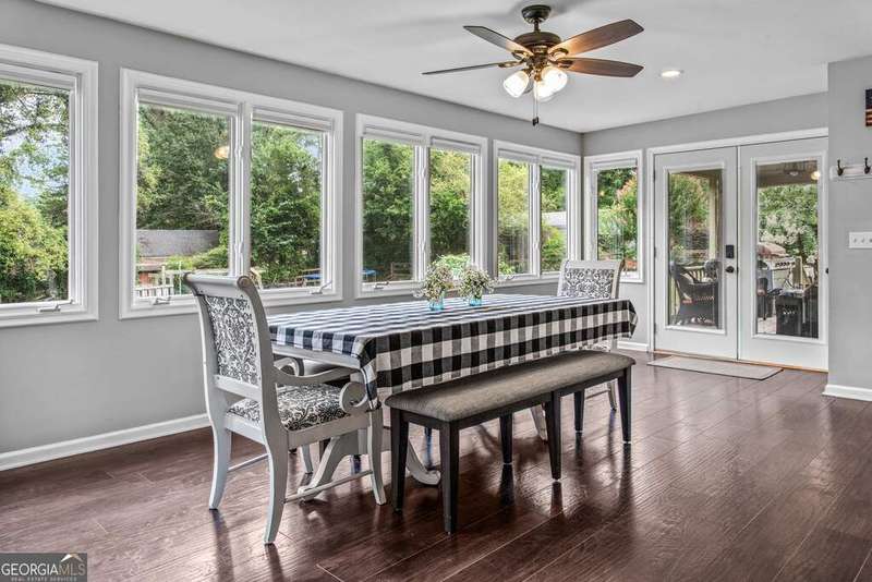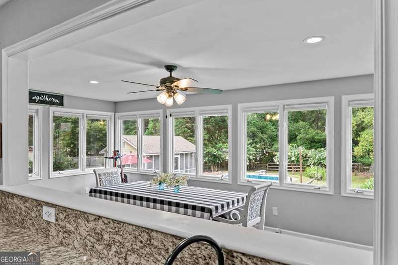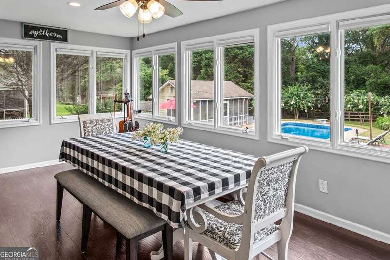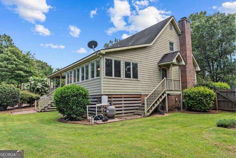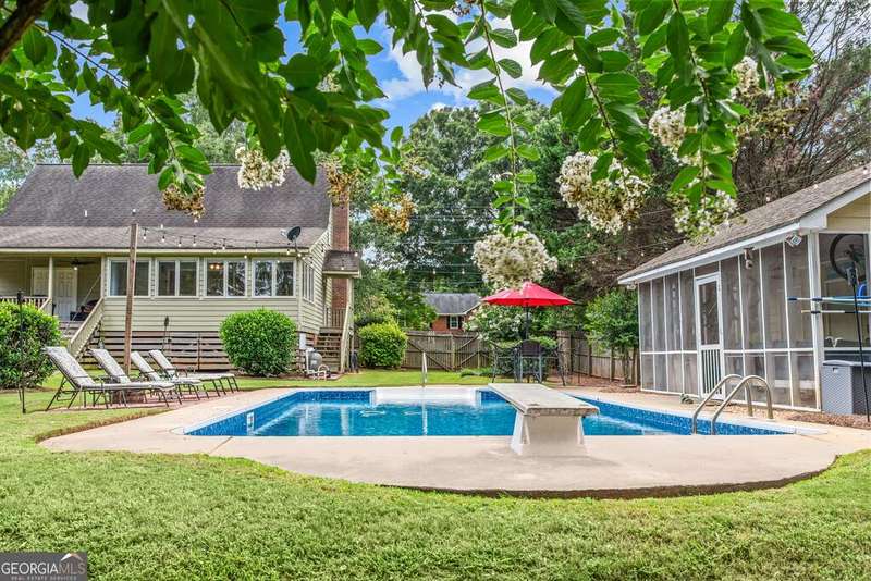 Nestled on a picturesque lot in Madison's sought-after in-town neighborhood near historic Hill Park, 991 Crawford Street offers the perfect blend of charm, comfort, and convenience. Welcomed inside to a bright, open floor plan where the living room seamlessly flows into the kitchen and sunroom. The eat-in dining area, framed by a wall of picture windows, invites you to enjoy tranquil views of your private backyard oasis. The main level features a spacious primary suite with a beautifully renovated bathroom, while the second floor offers two oversized bedrooms and a full bath-ideal for guests. Outdoors, your personal retreat awaits. A covered back porch overlooks a sparkling saltwater pool with a brand-new liner, complemented by a charming pool house complete with a half bath, cozy sitting area, and space for a beverage fridge. The fenced backyard provides the perfect setting for entertaining or simply unwinding in peace. Conveniently located, quick access is provided to the coveted Hill Park's playground, greenspace, tennis and pickleball courts, and newly updated public restrooms, this home is also moments from downtown Madison's shops, restaurants, the aquatic center, library, and all four public schools. This is more than a home-it's an in-town lifestyle you'll love.