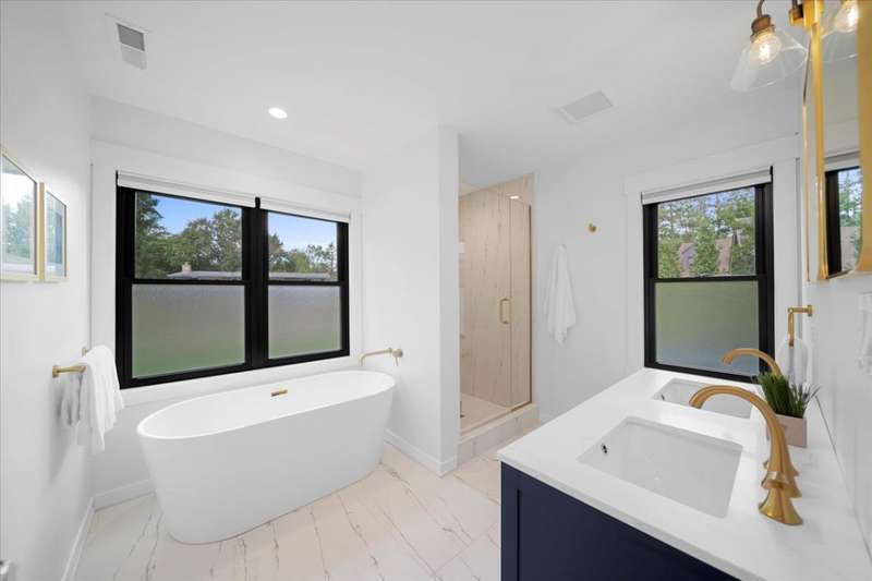 GOLF COURSE LIVING in almost 4000 SF Spectacular 5 BEDROOM + 4 FULL BATHROOM + 1 HALF BATHROOM home on highly sought after PRIVATE & QUIET CUL-DE-SAC LOCATION with gorgeous GOLF COURSE VIEWS and walking distance to the Lawn (Golf Course Restaurant) in highly rated NEW TRIER and AVOCA schools. Step into the inviting foyer entry and fall in love with this amazing FULL GUT REHAB home. Meticulous attention to detail throughout including: HARDIE BOARD SIDING, beautiful HARDWOOD FLOORS, NEW ROOF, NEW ELECTRIC, NEW WINDOWS, NEW PLUMBING, NEW HVAC, NEW HOT WATER HEATER and MUCH MORE. The bright, airy and light-filled formal living room features a cozy Gas Log Fireplace that serves as a focal point providing an inviting atmosphere and perfect space for both relaxation and entertaining. The SEPARATE DINING ROOM is perfect for intimate meals, casual dinners and celebrations with guests. Stunning and spacious, functional and stylish open-concept kitchen designed to be the heart of the home with CUSTOM CABINETRY providing ample storage, sleek QUARTZ COUNTERTOPS offering plenty of space for meal prep with top-of-the-line HIGH-END STAINLESS-STEEL APPLIANCES: BOSCH 6-burner gas RANGE, and THERMADOR REFRIGERATOR, BOSCH DISHWASHER, SHARP DRAWER MICROWAVE, BROAN VENT HOOD and expansive WATERFALL EAT-IN ISLAND serves as a social hub for your everyday family needs and a place for friends to gather. Enjoy the bright and airy SUN-DRENCHED FAMILY ROOM where natural light pours in through three walls of expansive windows creating an inviting atmosphere with seamless connection to the outdoors via the large sliding glass doors easily accessing the tranquil paver patio, deck and lush backyard. Spacious MAIN LEVEL BEDROOM with GORGEOUS ENSUITE BATHROOM boasts DOUBLE VANITY, FREESTANDING SOAKING TUB and CUSTOM GLASS ENCLOSED STEP-IN SHOWER perfect for in-laws, guests or those looking for the convenience of a first-floor Primary Bedroom. Rounding out the first floor is a must-have MUDROOM entry to the attached garage. The second-floor hosts 3 total bedrooms: 2 sizable bedrooms with Large Closets and a shared hall bath with double vanities, CUSTOM TILE shower along with the PRIMARY SUITE appointed with a WALK-IN CLOSET and ENSUITE BATHROOM with a TUB with CUSTOM TILEWORK, DOUBLE VANITIES, and SKYLIGHT. Lovely 2nd floor balcony overlooking the scenic golf course views. The fully finished EXTRA-SPACIOUS LOWER LEVEL includes large RECREATION ROOM perfect for movie nights or watching the game with convenient WET BAR detailed with custom cabinetry and wine/beverage refrigerator for your entertainment wants & needs + EXERCISE AREA + French door entry to the PRIVATE OFFICE SPACE perfect for your work-from-home demands plus the 5th bedroom and the well-appointed full bathroom. Modern and spacious lower level LAUNDRY ROOM with SIDE-BY-SIDE LG WASHER/DRYER and UTILITY SINK makes for CUSTOM & CONVENIENT way to neatly arr