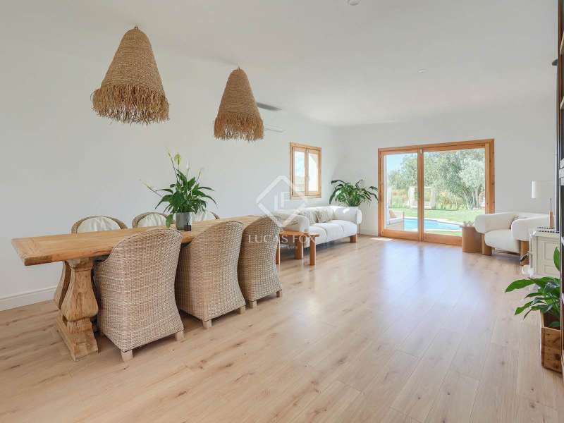 Located just a stone’s throw from the prestigious international school The Academy, this stunning estate offers the perfect blend of Mediterranean charm and modern comfort. Set on a generous 15,000 sqm plot, the property includes a beautifully designed 220 sqm main residence and a fully equipped 100 sqm guest house with a charming porch. The grounds are a true paradise for nature lovers, featuring a wide variety of mature fruit trees—algarrobo, fig, lemon, orange, lime, plum, apricot, and almond—along with a flourishing vegetable garden, perfect for enjoying fresh, homegrown produce year-round. Sustainability meets convenience with 20 solar panels (9.8 kW) powering the entire property, including the outdoor lighting and pool system. A private well ensures a free, self-sufficient water supply, complemented by a water softener and osmosis system. The main house offers three spacious bedrooms, two elegant bathrooms (including a luxurious en-suite with clawfoot bathtub), and a dedicated home office. The kitchen is a chef’s dream—fully fitted with high-end SMEG appliances, a wood-fired stove and oven, and an additional induction hob. The home is sold fully furnished and features independent air conditioning units in every room, fitted wardrobes, and solar-filtered windows for optimal temperature control. Security is a top priority, with a comprehensive alarm system, interior cameras, and contact sensors on all windows and doors. The guest house offers its own slice of comfort and privacy, complete with a bedroom, bathroom, mini kitchen, and a stunning lounge area with a fireplace—perfect for hosting visitors or extended family. Step outside and you'll find a private oasis: a saltwater pool, a bamboo poolside bar ideal for summer entertaining, and a play area for children. And for animal lovers, the property includes eight hens, a rooster, and a beloved pony named Campanilla—all of whom can remain or be relocated at your request. The design of the property is truly remarkable. Every detail has been thoughtfully curated, combining authentic Mallorquín architecture with the warm, minimalist elegance of Nordic interior design. The result is a magazine-worthy home that feels both luxurious and inviting. Located just a 10-minute drive from Palma, this is a rare opportunity to own a peaceful countryside retreat with all the modern comforts—and more. Don't miss your chance to fall in love with this unique property.