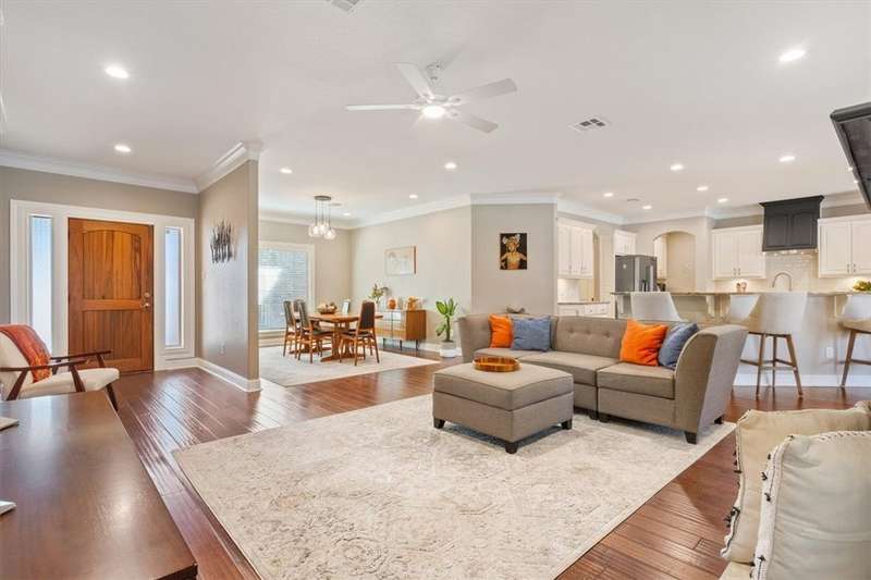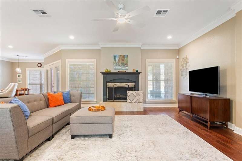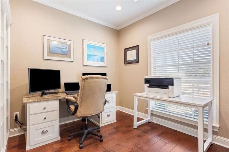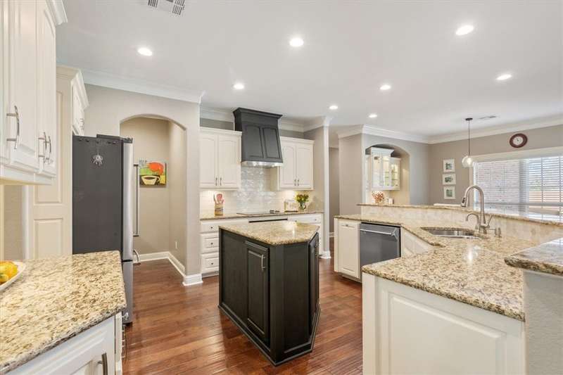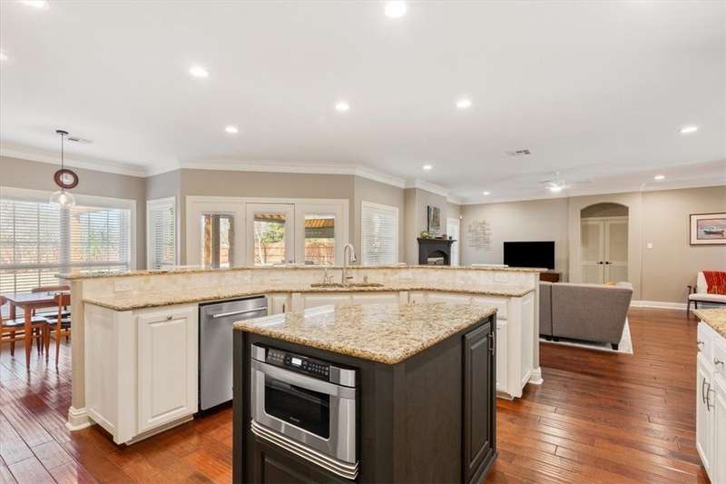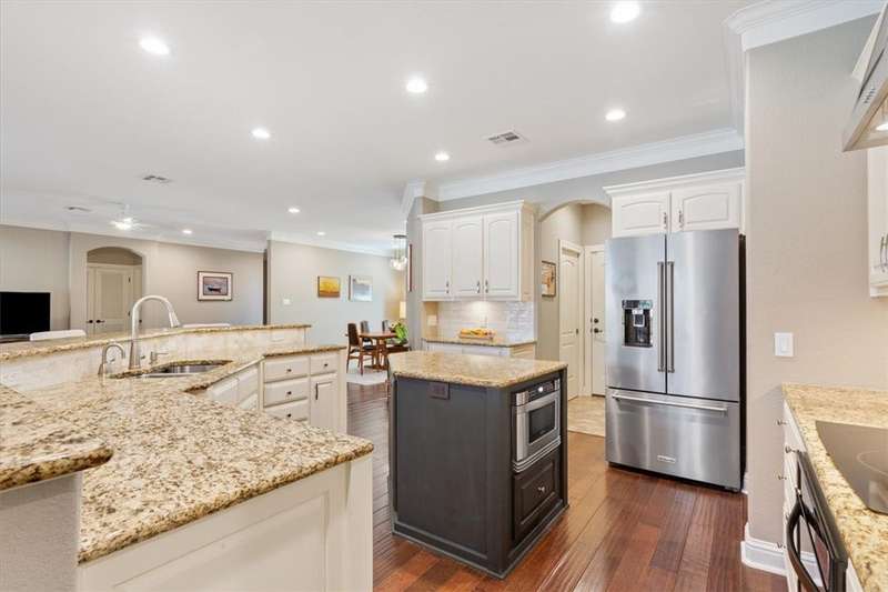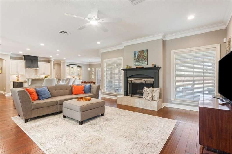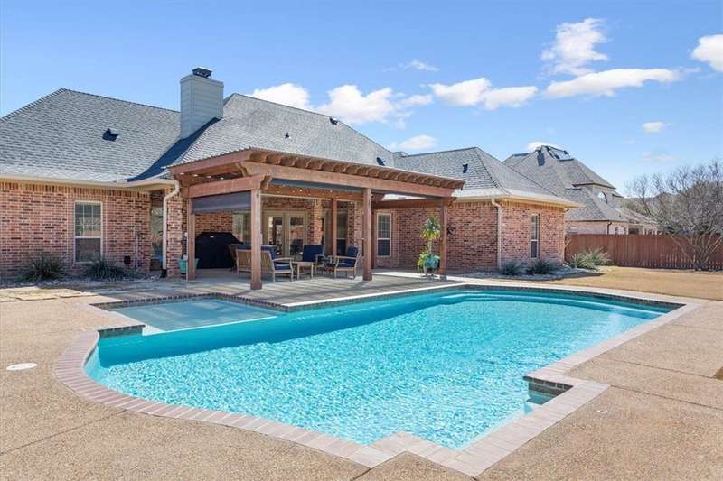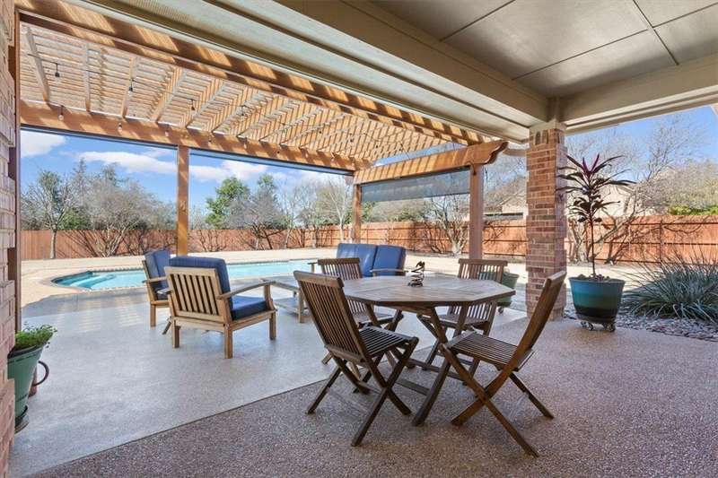 Welcome to this beautiful 4BR/3BA home in this established gated community of Austin Colony. This lovely, high efficiency home has foam insulation, designer colors and the perfect floor plan to entertain and enjoy with the open kitchen/living/dining space. Living room has recessed lighting, wonderful engineered hardwood floors and wood burning fireplace. Kitchen features updated fixtures, granite counters, island, stainless appliances, pantry, coffee room bar and breakfast area with built in server/china cabinet. Formal dining room is open to the living area and has large picture window. Large isolated primary suite with hardwood floors. Primary bath has dual vanities, separate tub, separate shower and large walk in closet with built-ins. Home features isolated office with built ins. Guest bedrooms are ample size with walk in closets. Computer nook area is great for home work. Side entry three car garage with insulated doors. Exterior features include large covered patio, pergola with retractable sun shades and gorgeous in ground pool for relaxing and fun. Privacy fenced backyard with sprinkler system. New roof in 2023. $739900
