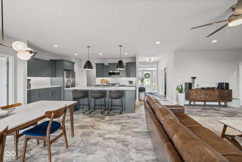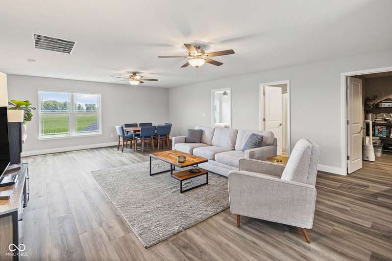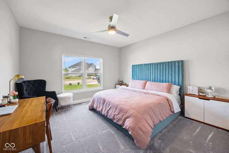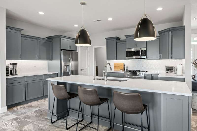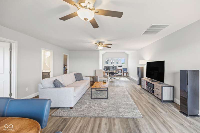 This Emma two-story by Milakis Homes offers 4 bedrooms, 3 full baths, and a spacious bonus room. The open floor plan features a fabulous kitchen with quartz counters, 5-burner gas range/oven, pantry closet and large island. Main level primary suite with dual walk-in closets, double sinks, and tile shower. Additionally on the main level you'll find a den with ceramic tile, laundry with adjacent mudroom, and two additional bedrooms with walk-in closets and a full bath. Upstairs enjoy ample space in the loft, plus a 4th bedroom and 3rd full bathroom, and a large storage room. Enjoy the covered extended patio, fully fenced and irrigated yard, and 3-car garage with sink, cabinets, and attic storage access.