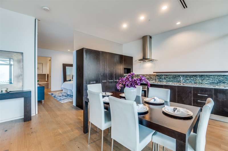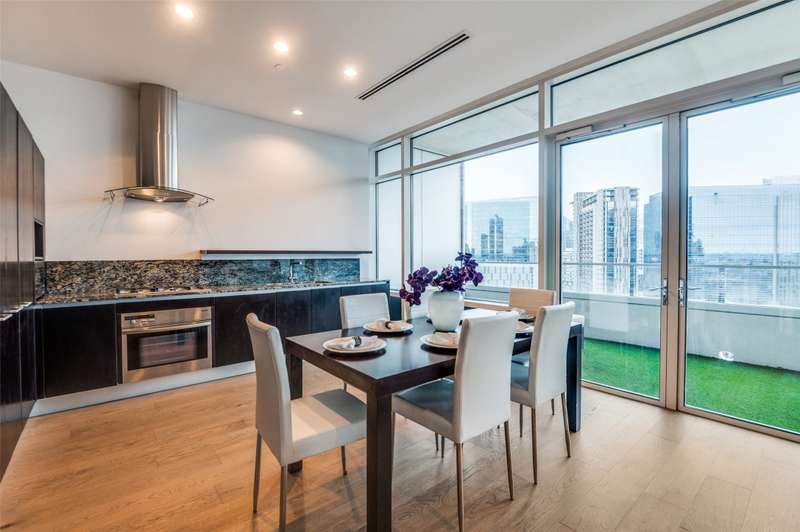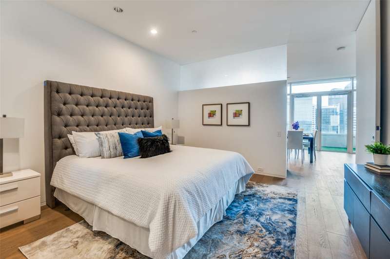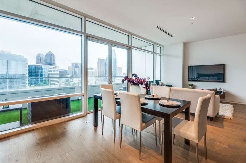 Experience upscale urban living in this 19th floor residence. Located in the heart of Dallas' vibrant Victory Park neighborhood this high-rise condo offers breathtaking floor to ceiling views, sophisticated finished, and result style amenities. Step into an open-concept living with high ceilings, and expansive glass walls that flood the home with natural light. The spacious primary suite includes a soaking tub, and a walk-in shower, as well as generous closet space with built ins. Residents of this exclusive building enjoy 24-hour concierge, valet, fitness center, pool, and access to Victory Park's premier dining, shopping and entertainment all just steps from American Airlines center.